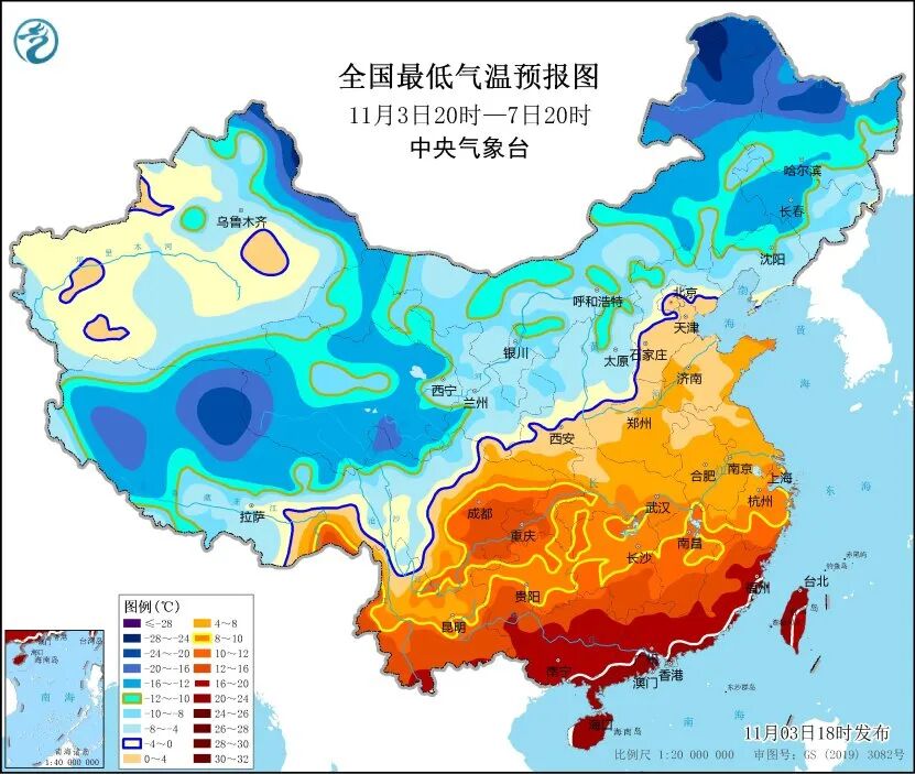 预计,最低气温出现在7日早晨,最低气温0℃线将位于河北北部、北京西部和北部、山西南部至陕西关中平原、甘肃东南部一带,长江中下游沿江大部地区最低气温将降至10℃左右。