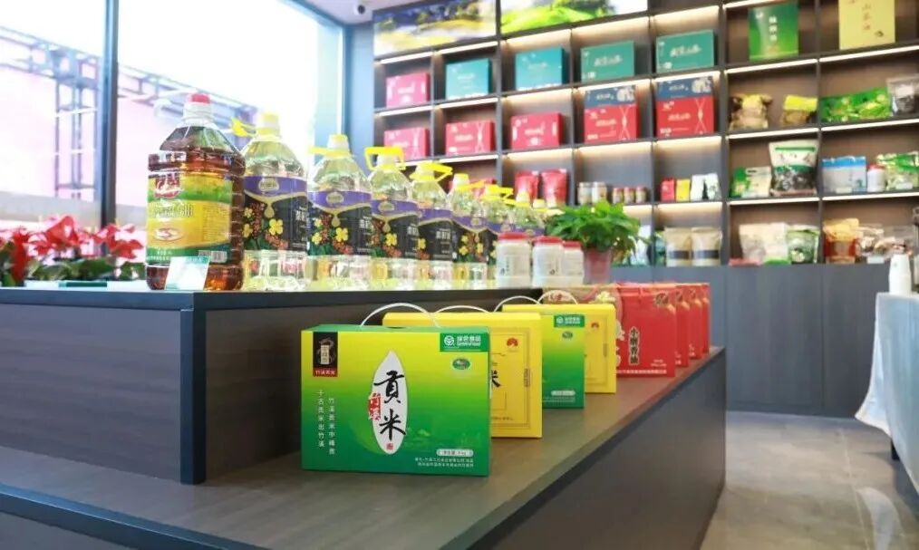 秉承一产为主导,大厅设置特色产品展柜,消费者可以在体验馆内看到、尝到、买到竹溪的贡米、贡茶、贡木、VOSS水、高山土豆、笋干、土鸡蛋、腊蹄子、腊肉、魔芋精粉等20余种特色产品,促进当地特色产业发展。体验馆内的风格极具竹溪特色,每走一步都被浓厚的竹溪文化紧紧包围。