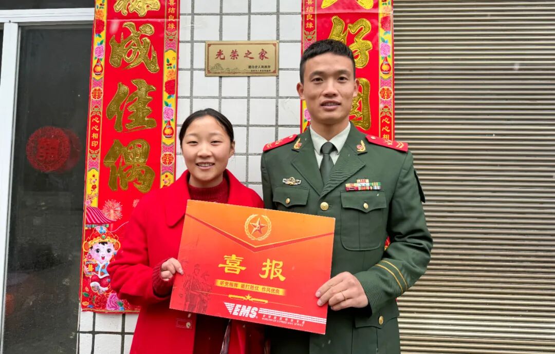 云上竹溪客户端讯 实习记者 陈雅琪 通讯员 魏义德 胡小丽 报道:喜报遇上喜事,双喜临门。“忠于国家,忠于人民,忠于你”“往后余生,你保家卫国我做你最坚强的后盾”。