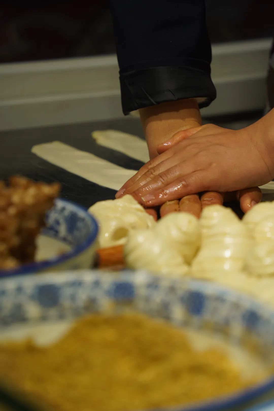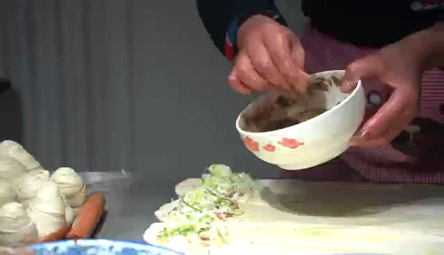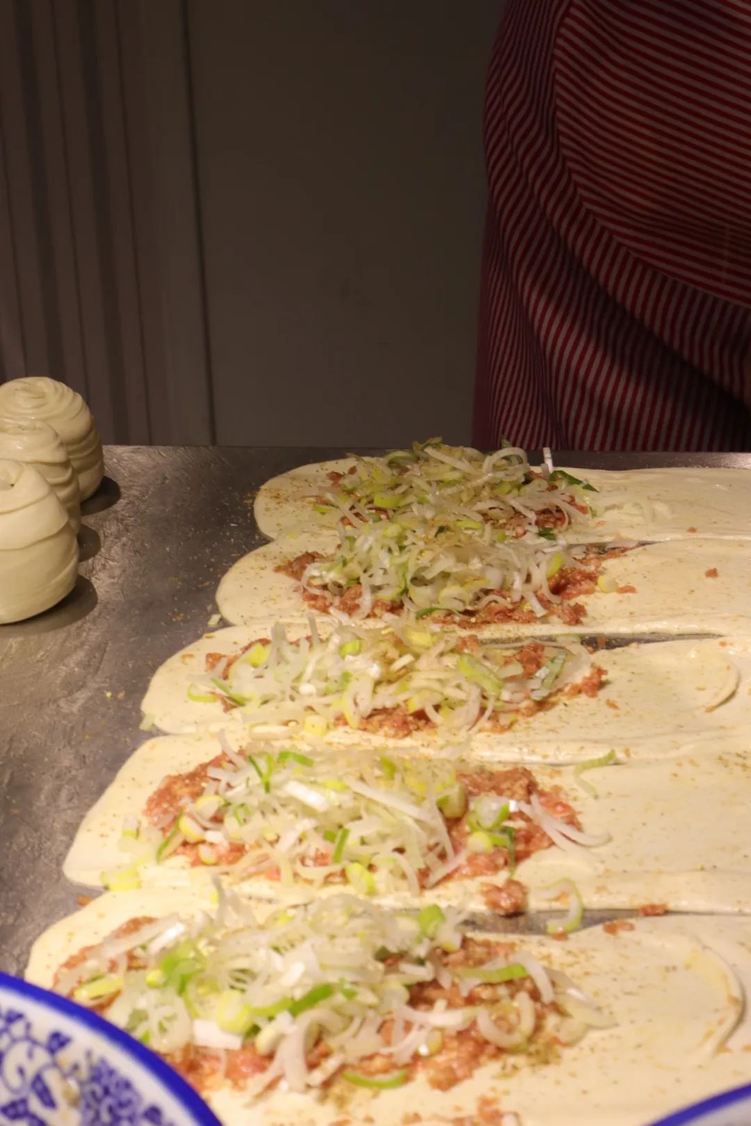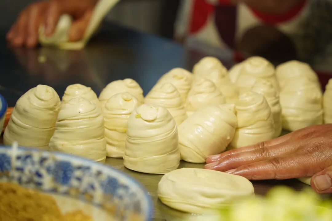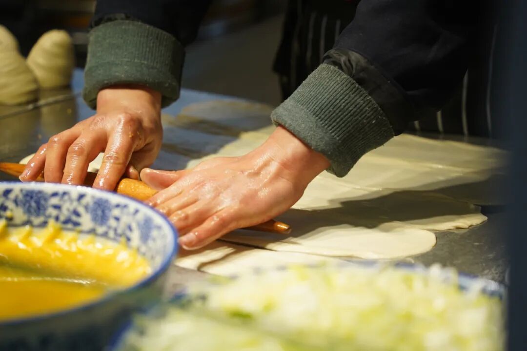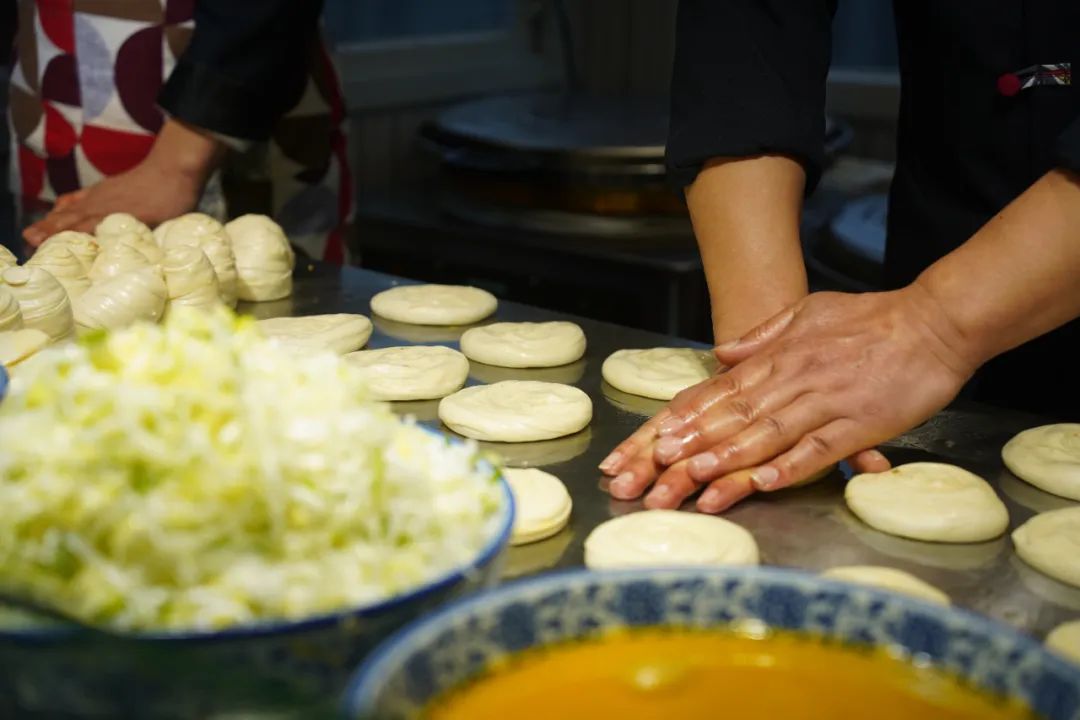 揉擀出的面团晶莹透亮,拌好的肉馅色泽鲜嫩,在这两样食材的不期而遇下,便有了肉饼独一无二的灵魂。