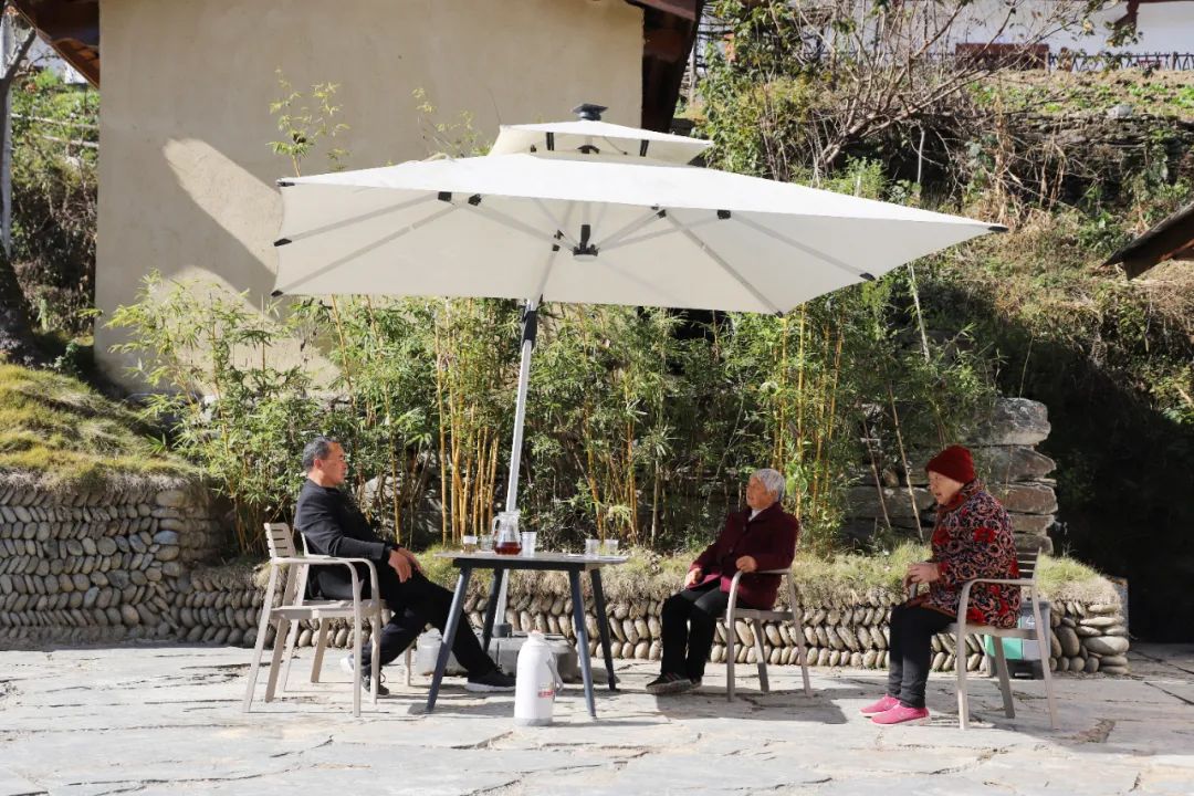 吴善凤是土地梁村70多岁的老党员,身体硬朗,热情好客,老伴儿是退休职工。两位老人将闲置房屋改造为“邻里驿站”,并积极参与互助养老志愿服务,主动照顾年龄大的、身体弱的老人。“平时附近的老年人到我这儿来喝茶聊天打牌,逛一逛景区,饿了可以点餐,让茶香小厨配送。也可以直接到‘老年食堂’去吃,离得也近,几步路就到了。”吴善凤介绍。