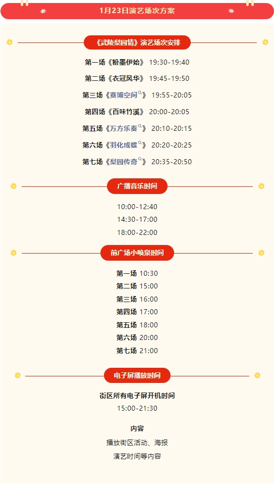 1月23日,武陵不夜城演艺节目单来啦