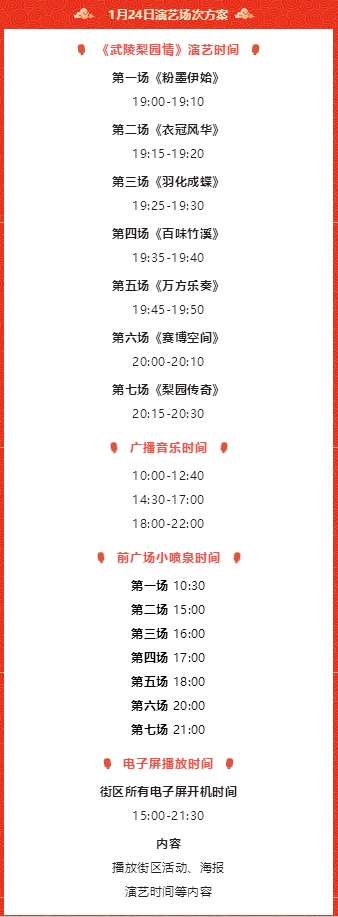 1月24日,武陵不夜城演艺节目单来啦