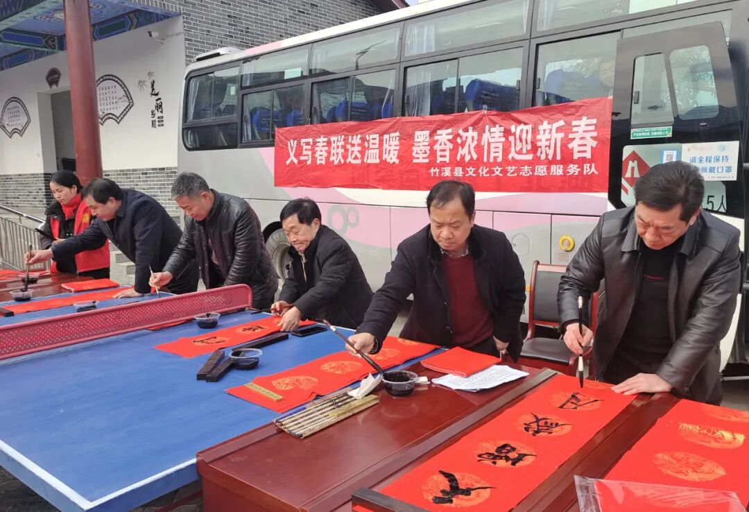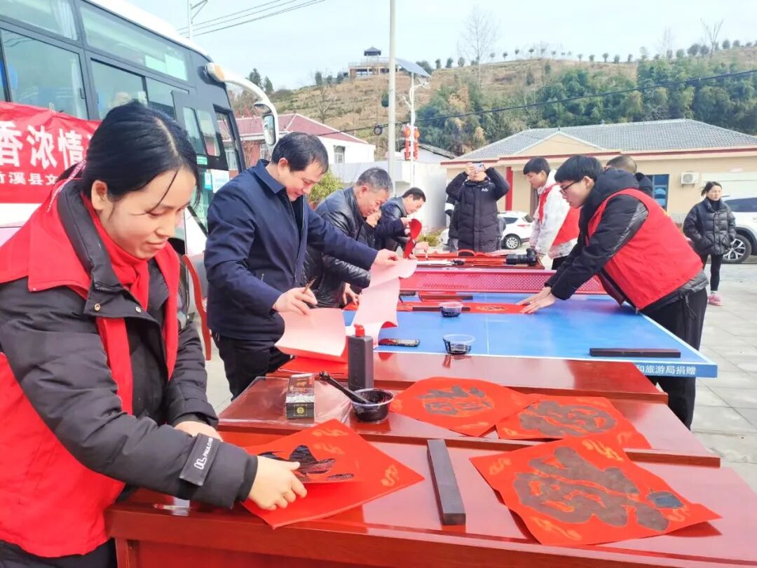 在小南沟村广场,书法爱好者挥毫泼墨、书写新春,一副副隽秀工整的对联跃然纸上,为村民送春联、送“福”字,字里行间充满着对美好生活的祝愿,迎接新春的氛围在欢声笑语中蔓延开来。