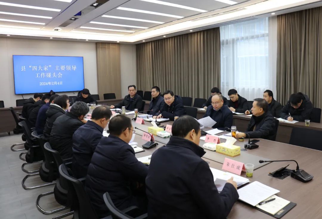 云上竹溪客户端讯 记者 杨秦青 报道:2月4日,县委书记许庆一主持召开县“四大家”主要领导工作碰头会,就全县春节期间文化活动及武陵不夜城春节活动、深化干部能力作风建设提升年活动筹备等工作进行会商研究部署。县委副书记、县长师文明,县人大常委会主任蒋波,县政协主席李晋,县委副书记、政法委书记陶猛出席会议。