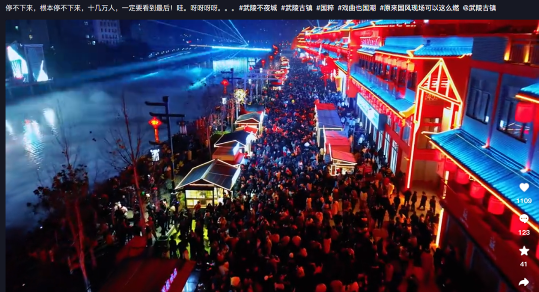 好风凭借力,送我上青云。武陵不夜城,成为了我县一张响亮的名片。我县也将继续乘着文旅融合发展的东风,乘势向上,全面整合文化旅游资源,打造更有活力、更有魅力的文旅产品,让我县的夜晚“亮”起来,让商圈人气“聚”起来,让夜间消费“火”起来,让群众生活“乐”起来。