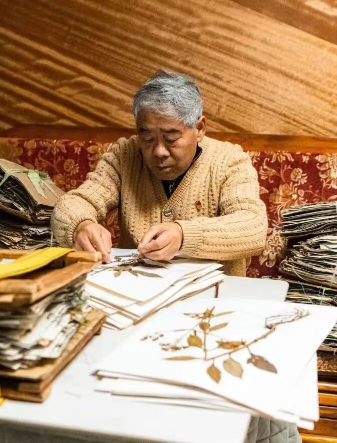 在竹溪县电视台的家属楼里,甘啟良坐在客厅的方桌前,将干燥好的植物装裱到台纸上,然后在标签上写明植物名称、科属,放置到标本夹中,一个植物标本就做好了。妻子李盛兰也会帮着一起做标本,那细心又熟练的样子,完全看不出来她曾经非常反对甘啟良的植物考察工作。最初,甘啟良把采集的植物带回家,上面的泥巴、虫子弄得屋里乱糟糟,这让爱干净的李盛兰十分反感,有一次她甚至把那些花花草草拿出去扔掉,让甘啟良几天的辛苦打了水漂。李盛兰“闹腾”几年,甘啟良还是“我行我素”。终于有一次,她决定跟随甘啟良一起去野外,“看看他的这个工作有多重要”。他们一起跋山涉水,李盛兰亲眼见到甘啟良为了采一棵药草艰难爬上悬崖,踩过的石头滚落到旁边的深渊中,把她吓坏了。从那以后,李盛兰的态度转变了:“这么艰难他还坚持要完成,这一定不是小事,家人应该支持。”她开始学着做标本,儿子女儿回家也会帮着一起整理标本、拍照存档。他们还会轮流陪甘啟良外出考察,一家人俨然都成了甘啟良的科研助手。