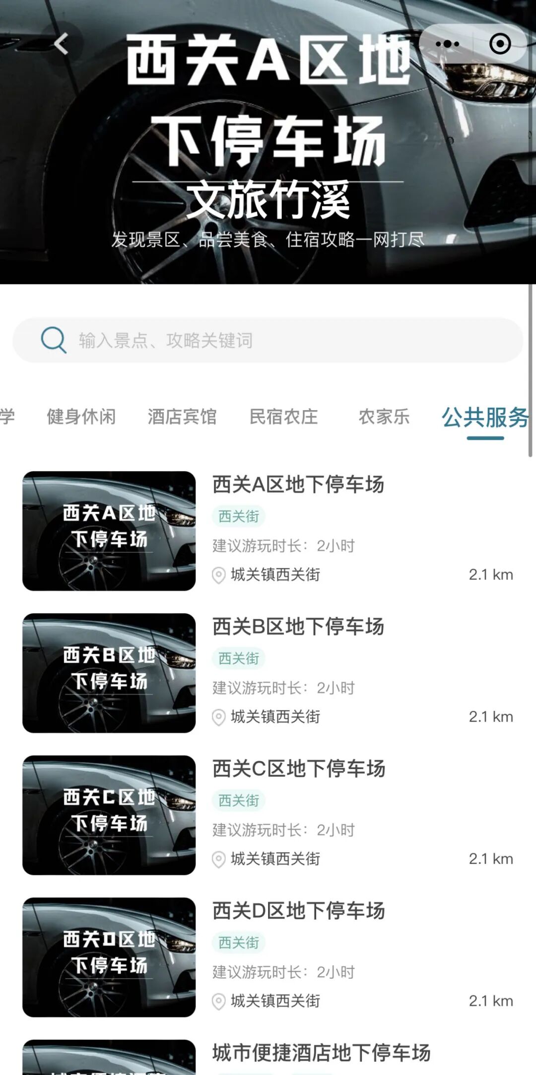 各位游客朋友,还可以通过“文旅竹溪”智慧旅游系统,搜索离您最近的停车场以及路线地图、