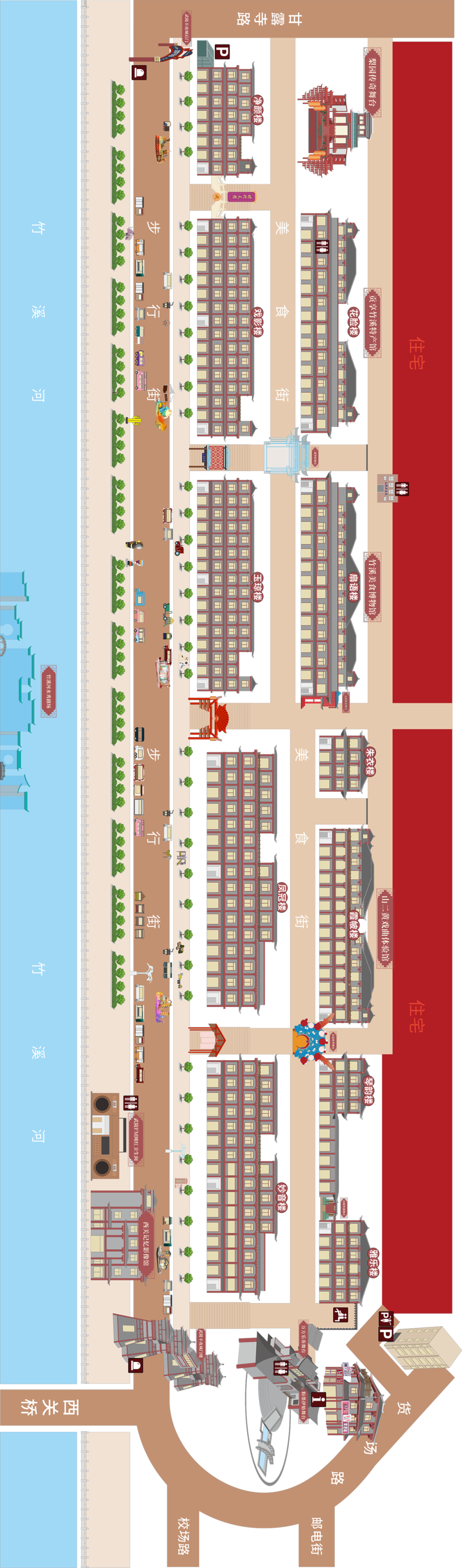 从高速路一下,沿途有武陵不夜城的导视导牌,并且街区内有1000多个地下停车场,从西关街A区到E区,春节期间全部开放,给大家便利停车体验。
