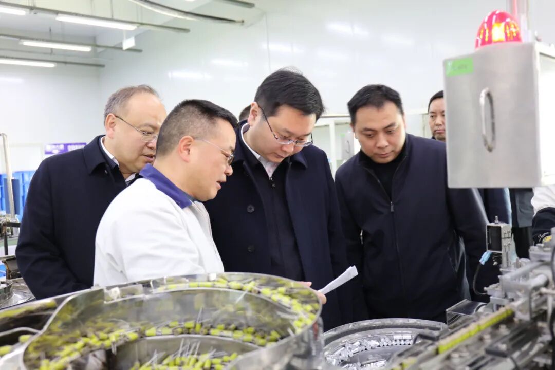 在湖北人福药业,许庆一、师文明走进企业中控室,通过实时监控画面,察看生产线整体运行情况,叮嘱企业继续发挥自身优势,加强技术研发和自主创新,持续巩固提升规模优势,在新的一年努力跑出发展“加速度”。