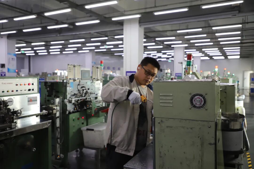 在湖北凯泽鑫电子有限公司的机械车间,寂静的厂房再次响起机器的轰鸣声,工人们身着整洁的工作服,戴着手套,仔仔细细地调试设备,为新年度的生产做好充分准备。