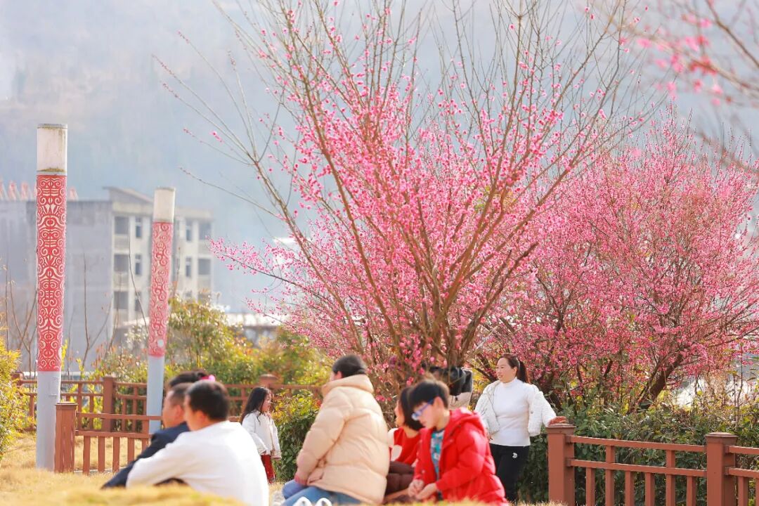 朵朵梅花点缀在枝头红的、粉的、白的……阳光下暗香浮动,展露出报春的笑颜。