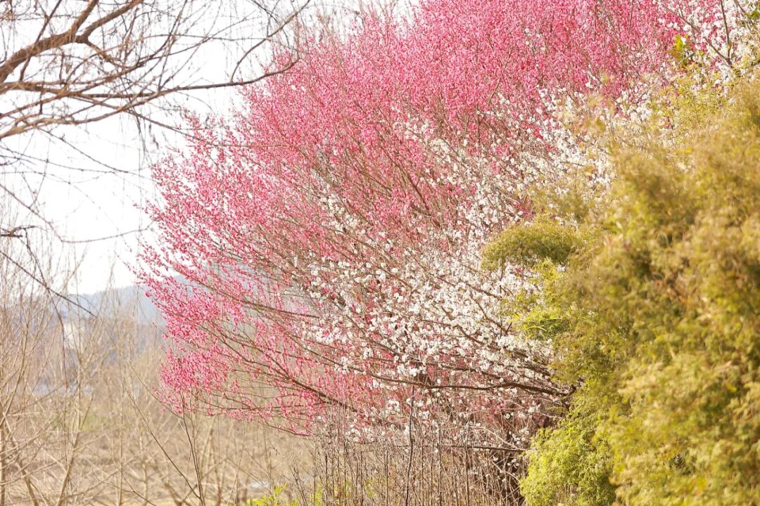 红梅娇艳如霞,白梅洁白似雪,一簇簇盛开的花朵让人赏心悦目,春的气息扑面而来。