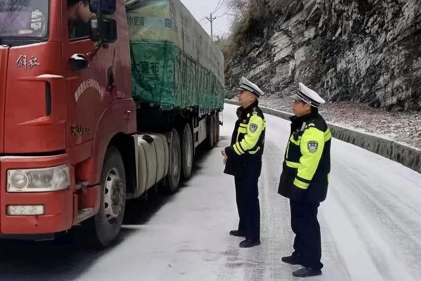 2月21日一大早,县公安局交警大队民辅警和各派出所路长提前到达各自分包的执勤点,顶严寒、冒冰雪指挥疏导交通,帮助出行困难群众,全力保障道路安全、畅通、有序。