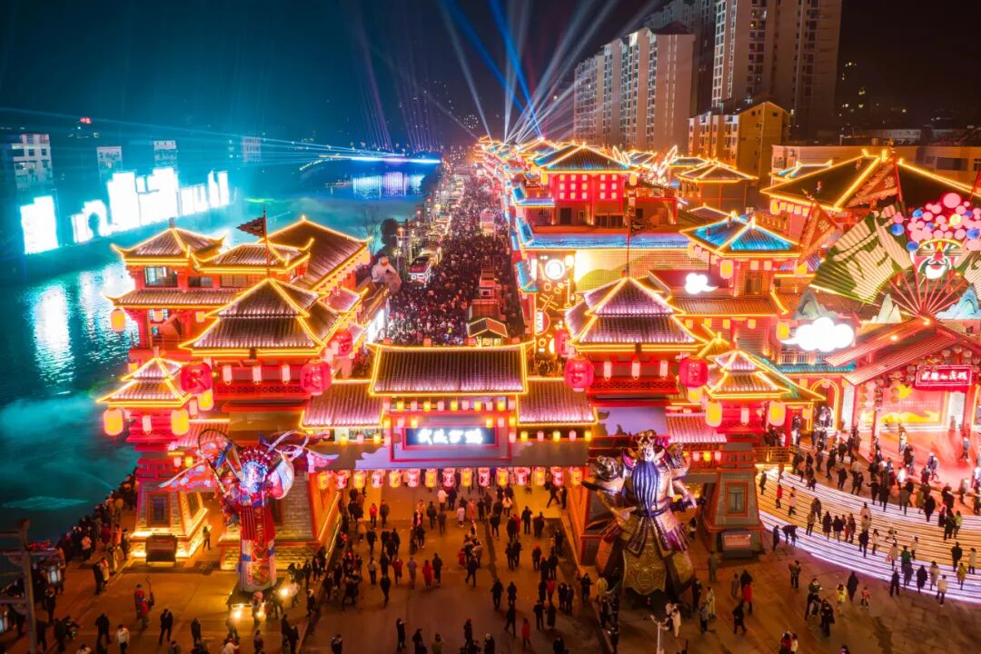 以山二黄文化为内核的竹溪“武陵不夜城”开街便“火爆出圈”沉浸式的戏曲体验让游客感受到武陵古镇的别样魅力