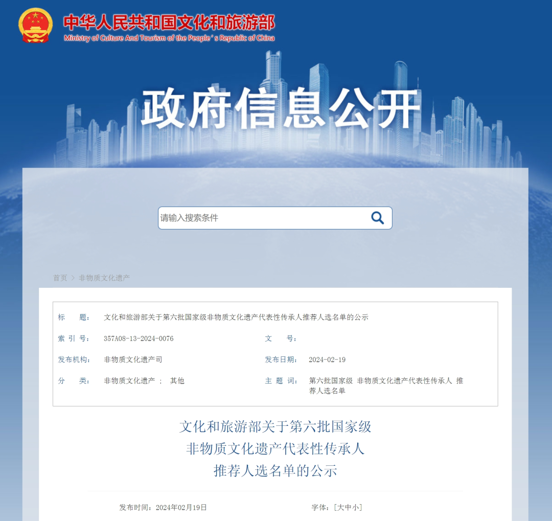 近日,文化和旅游部公示了关于第六批国家级非物质文化遗产代表性传承人推荐人选名单,全市4人入选其中我县1人榜上有名。