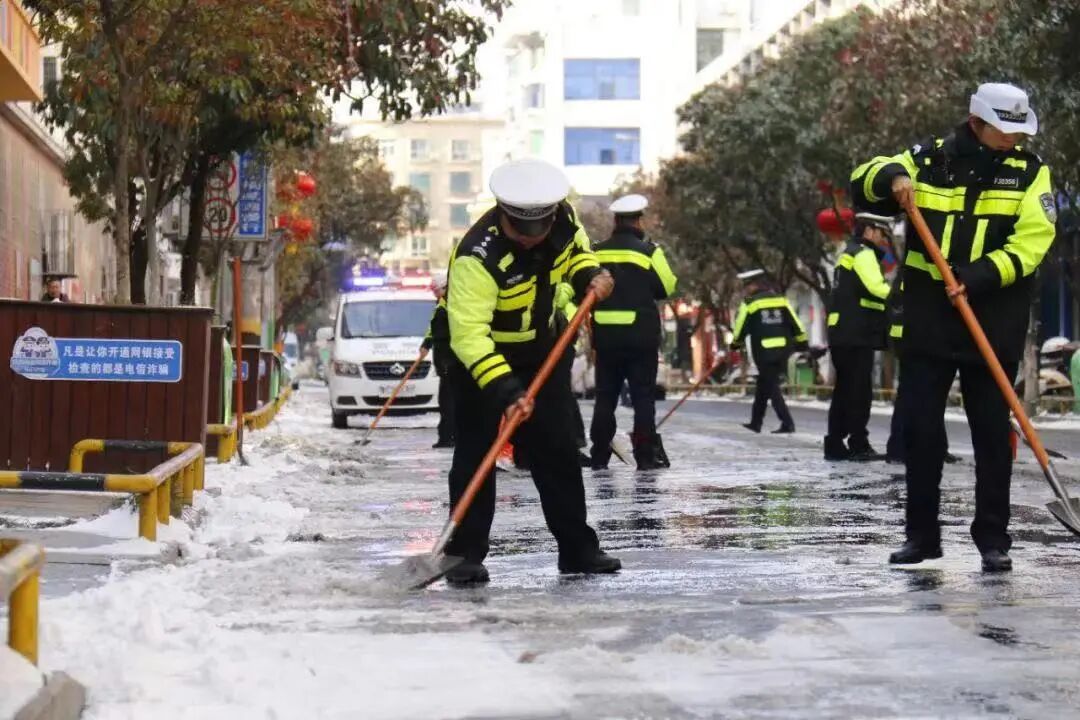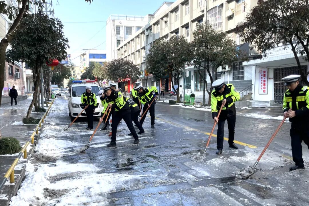 雪情就是命令。当天上午,县公安局交警大队出动警力130余人,警车30余台,抛洒融雪盐60余包,在城区和乡镇交通干线除雪破冰,尽锐出战、保民平安。