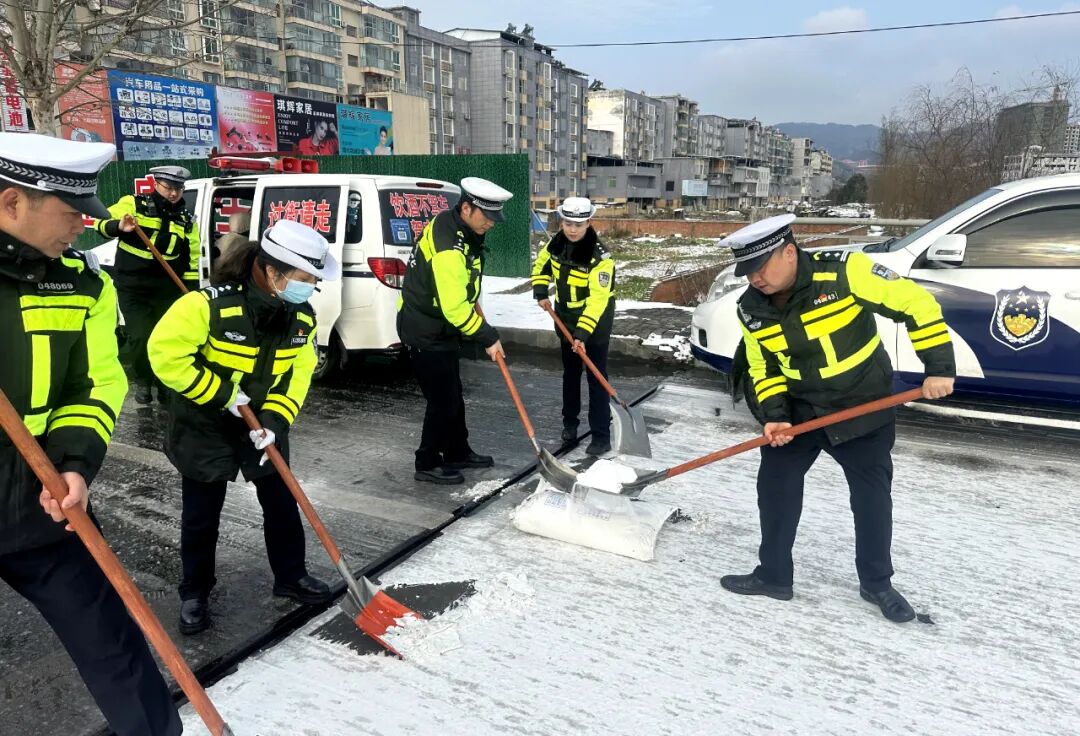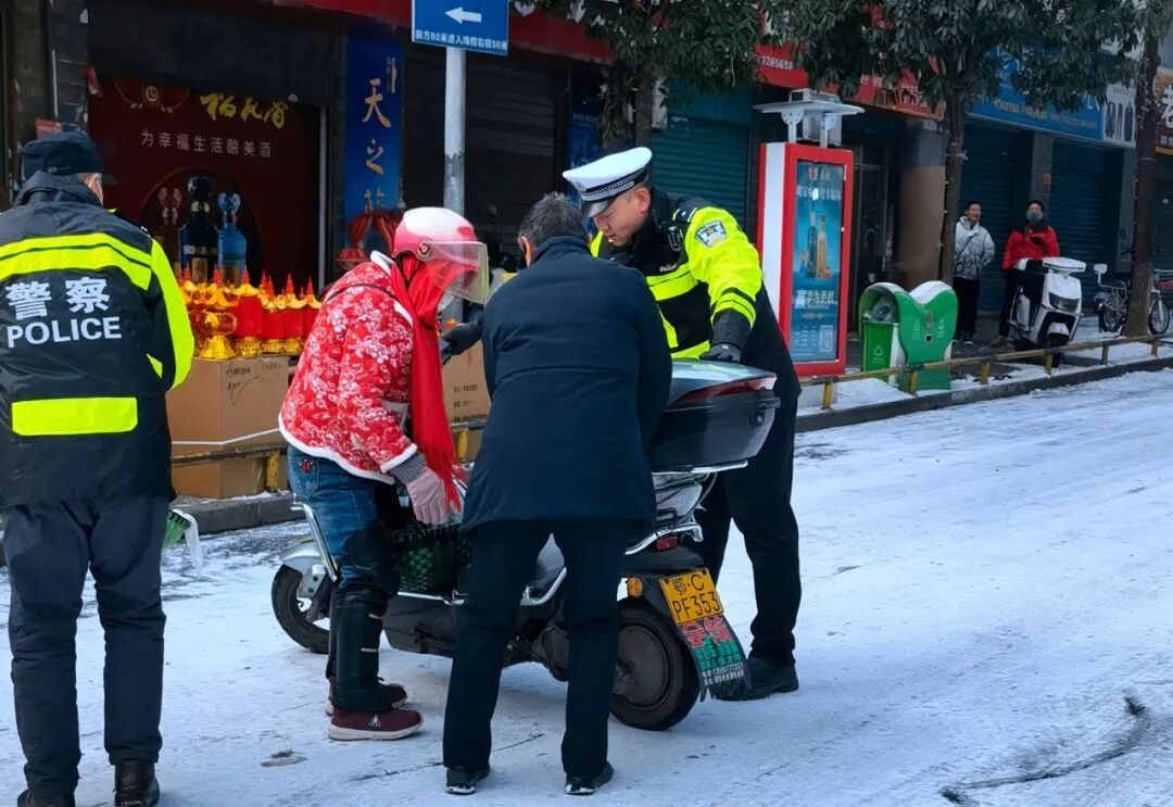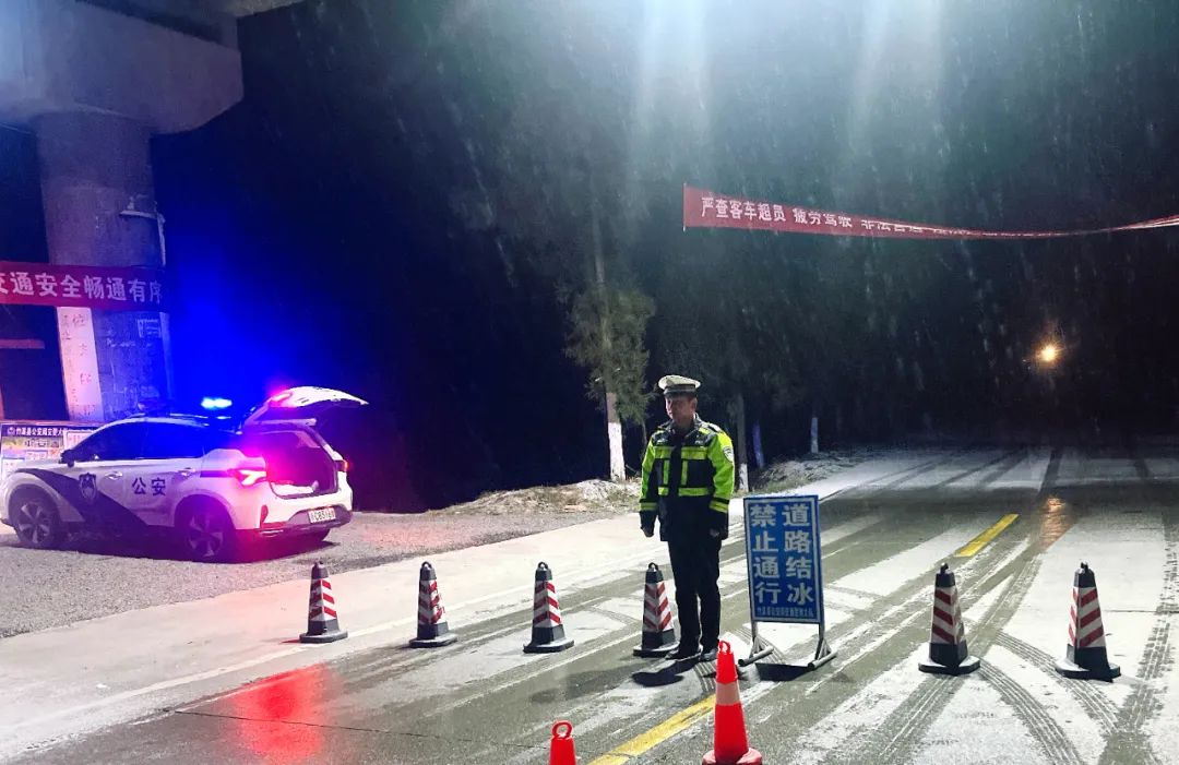 以雪为令闻雪即动,县公安交警大队和各派出所第一时间对辖区道路开展踏查对存在通行隐患路段进行交通管制叮嘱过往车辆谨慎驾驶。