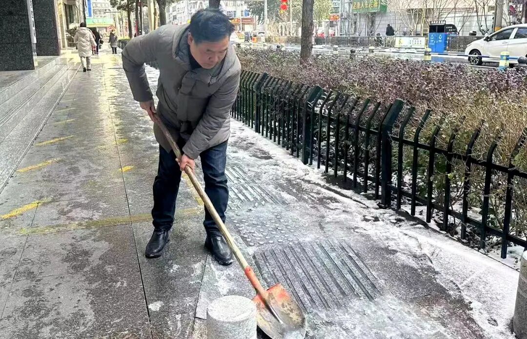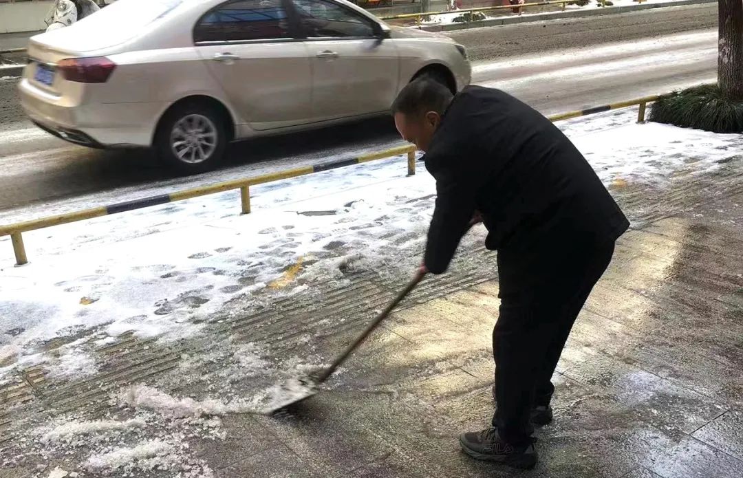 全体干警出动到各个路段清除积雪积冰确保市民安全出行