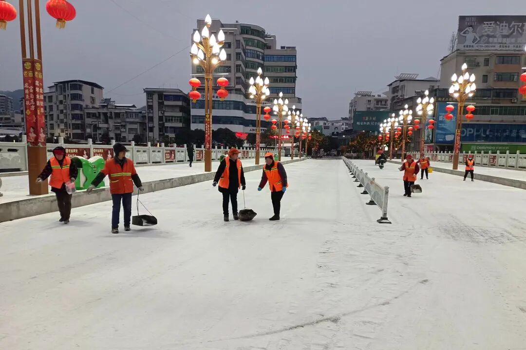 天刚蒙蒙亮,县城管执法局便组织环卫工人在城区重点路段、道路交口、桥梁、陡坡、弯道等地撒融雪剂和工业盐,全力以赴开展融雪防冻、交通保障、应急准备等各项工作,确保市民群众安全出行。