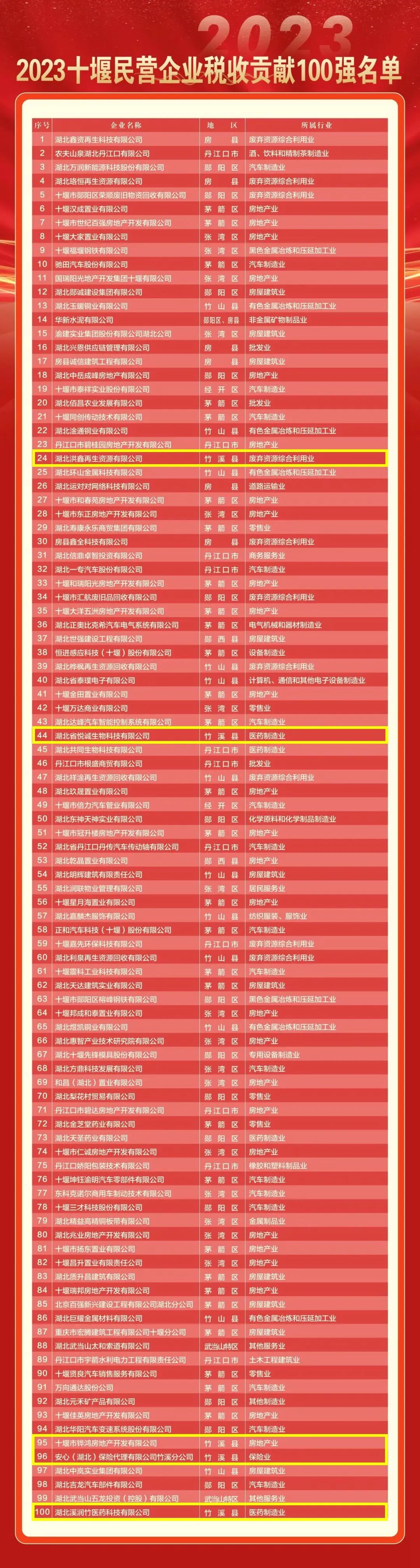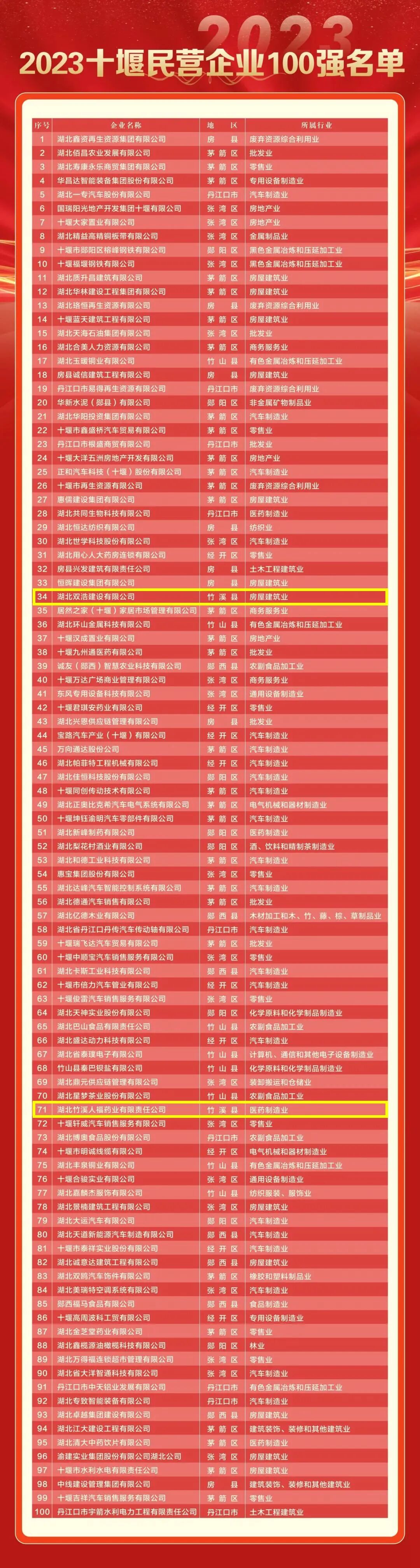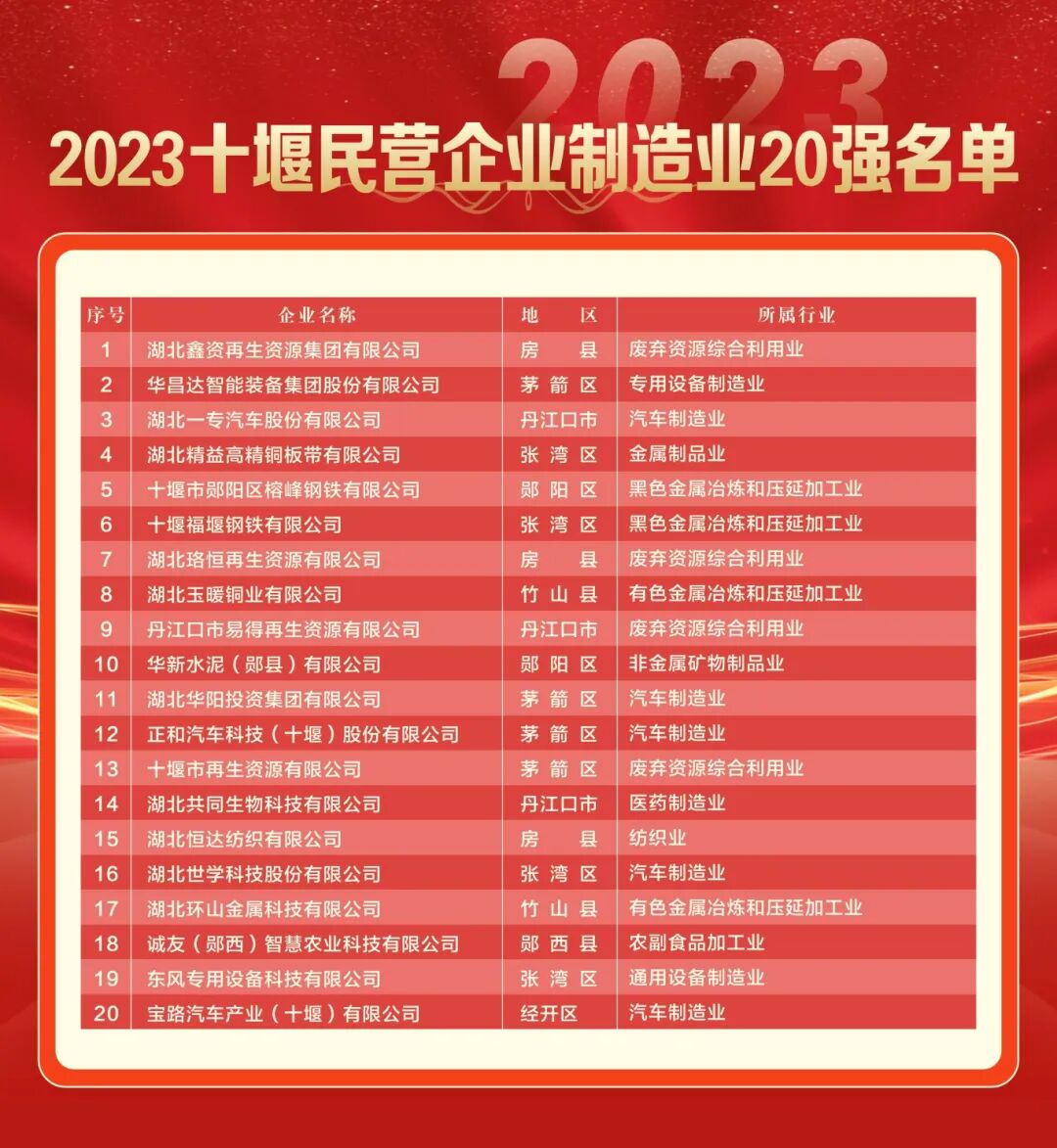 2月25日,2023十堰民营企业100强、制造业20强、税收贡献100强榜单正式发,布我县7家民营企业上榜一起看看都有哪些企业。