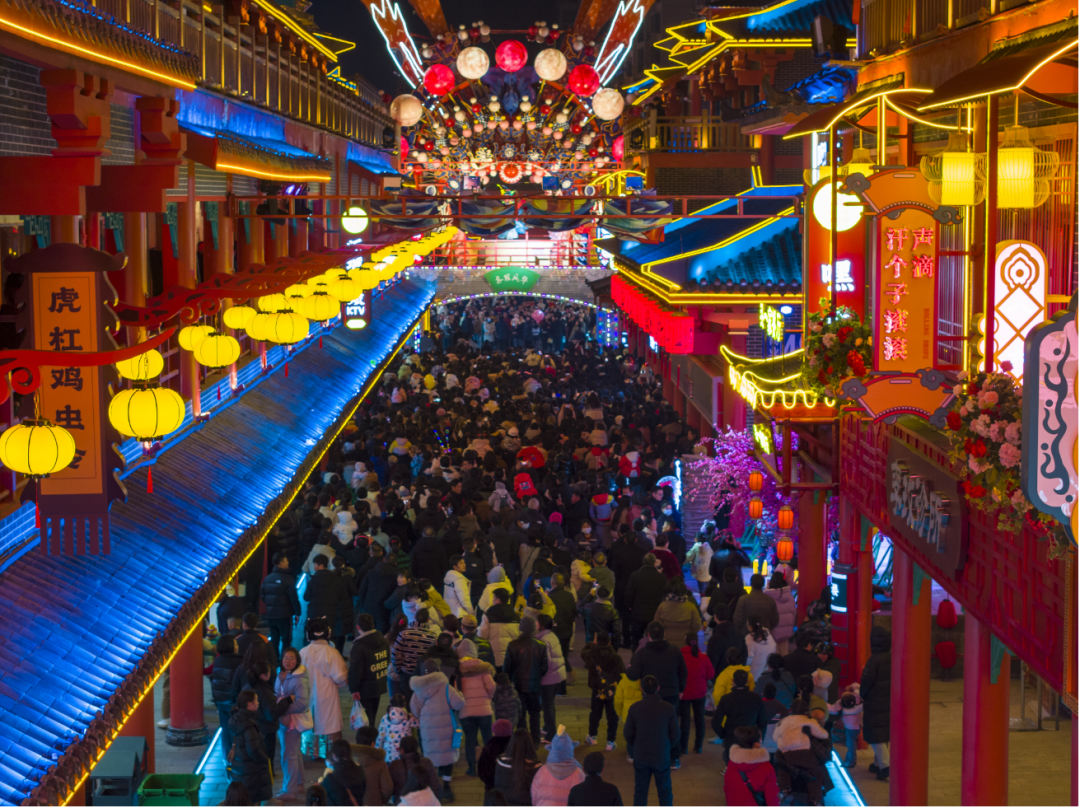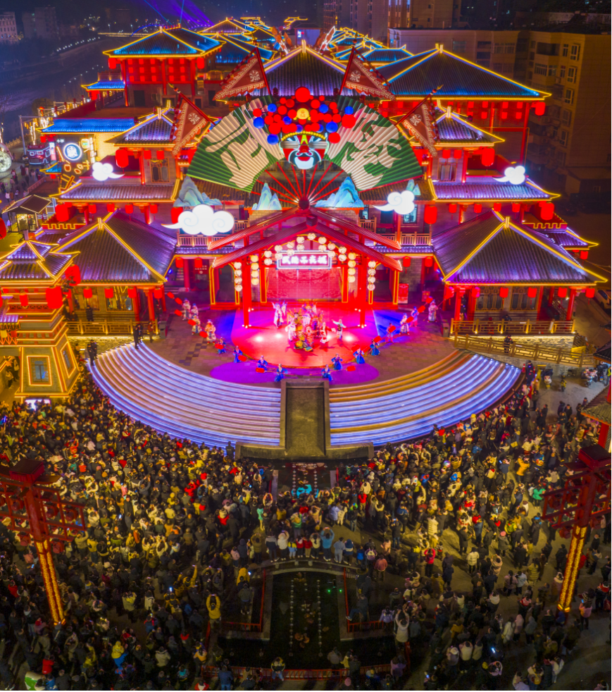 武陵不夜城自2023年12月30日开街以来火爆出圈刷屏网络,人气爆棚截至2月22日共接待游客400万人次武陵不夜城在抖音话题浏览量超过2300万+