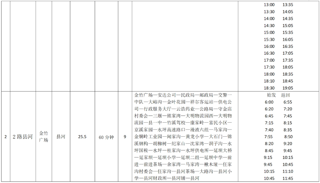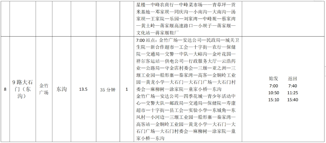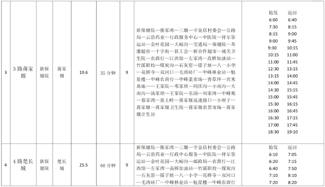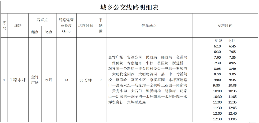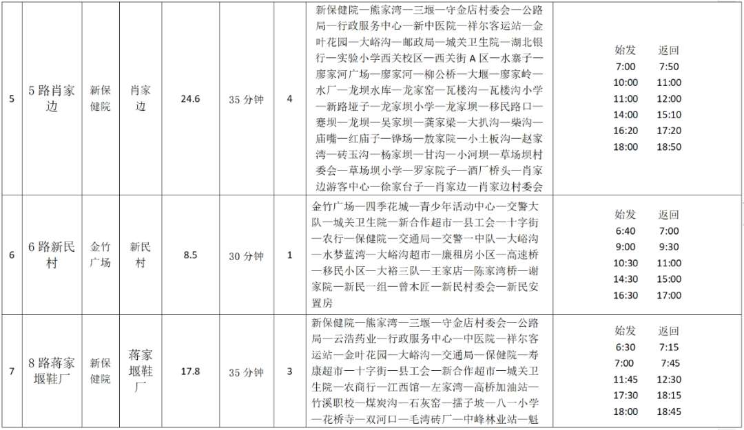 竹溪城乡公交线路明细表