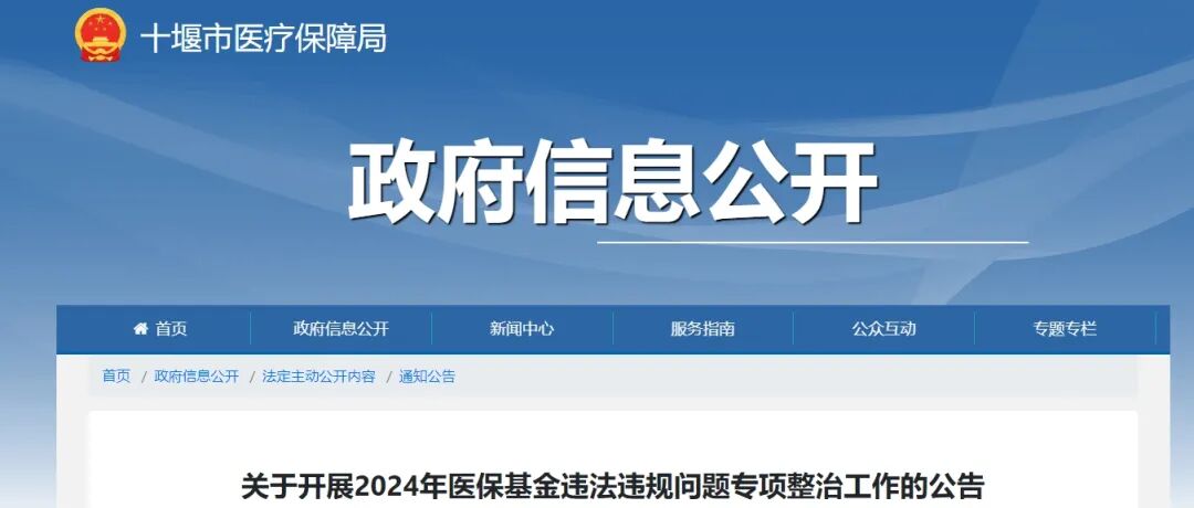 日前,市医疗保障局发布公告,在全市范围内开展2024年医保基金违法违规问题专项整治。