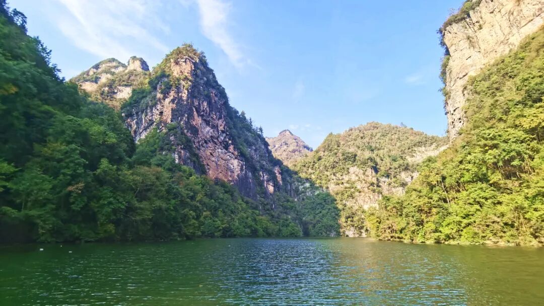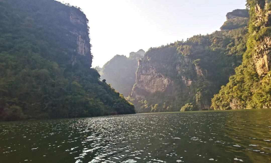 最有名的也是最好玩的是一段长约8公里的峡谷,两旁山势高耸,岩崖雄浑多变,十几年前峡谷下游建设电站使这道迂回曲折的峡谷造就出山雄、水阔、崖险的高峡平湖壮丽景观,人称“小三峡”。
