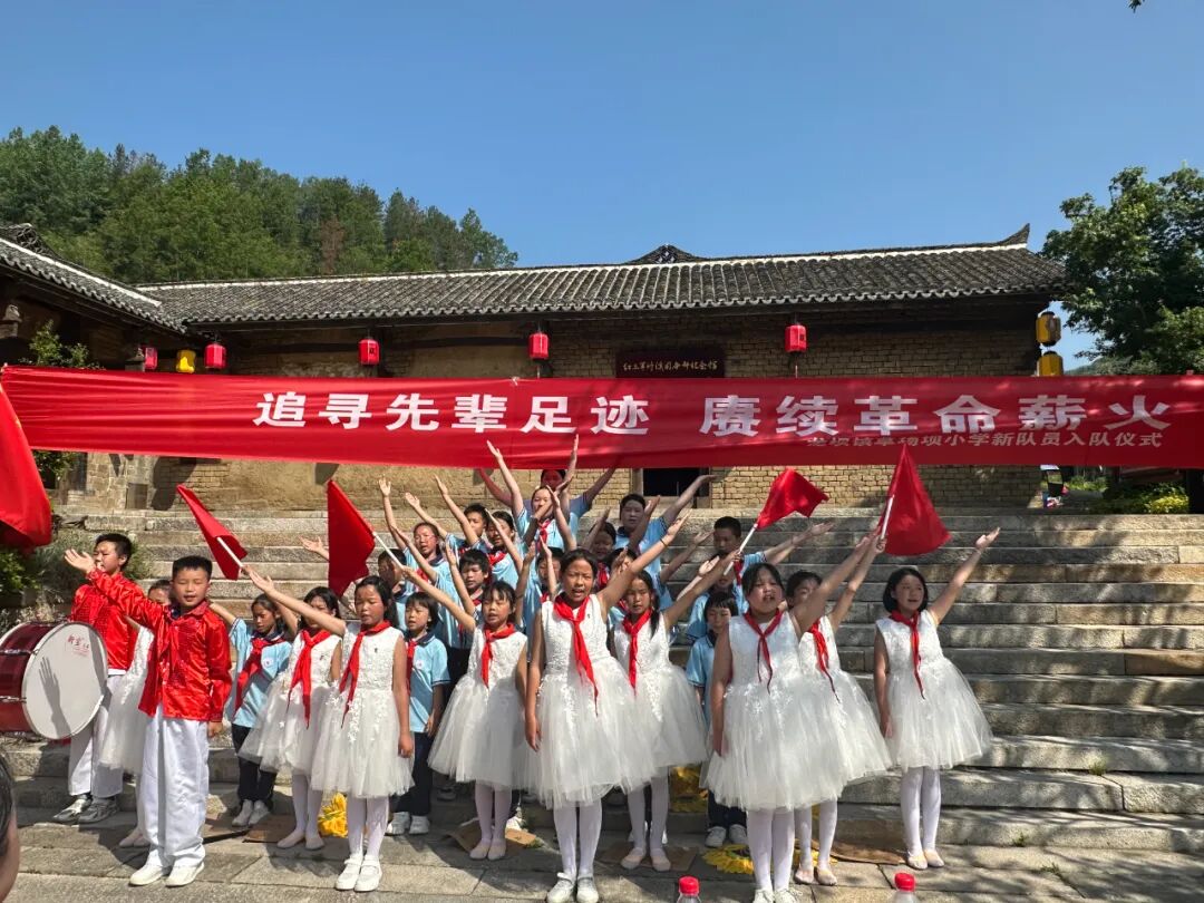 5月24日上午,龙坝镇草场坝小学在红三军纪念馆前举行少先队员入队仪式。龙坝镇中心学校负责人为“优秀少先队员”颁发荣誉勋章,给同学们讲述红三军故事。(陈学娟)