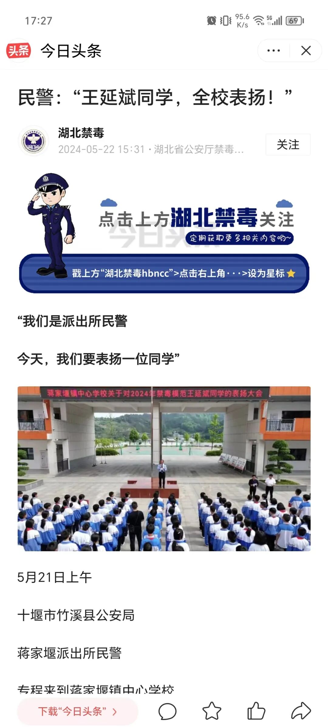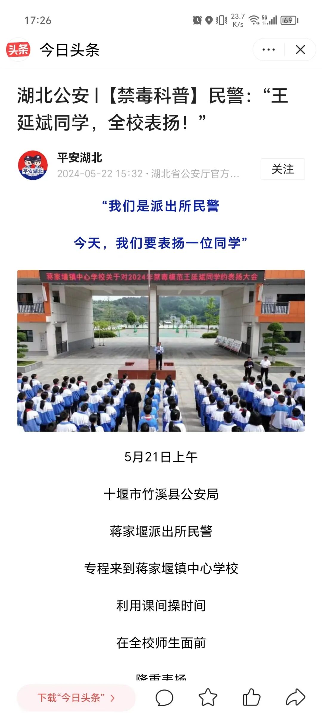 荆楚网、湖北日报、极目新闻客户端、荆楚网、湖北禁毒、平安湖北今日头条转发。
