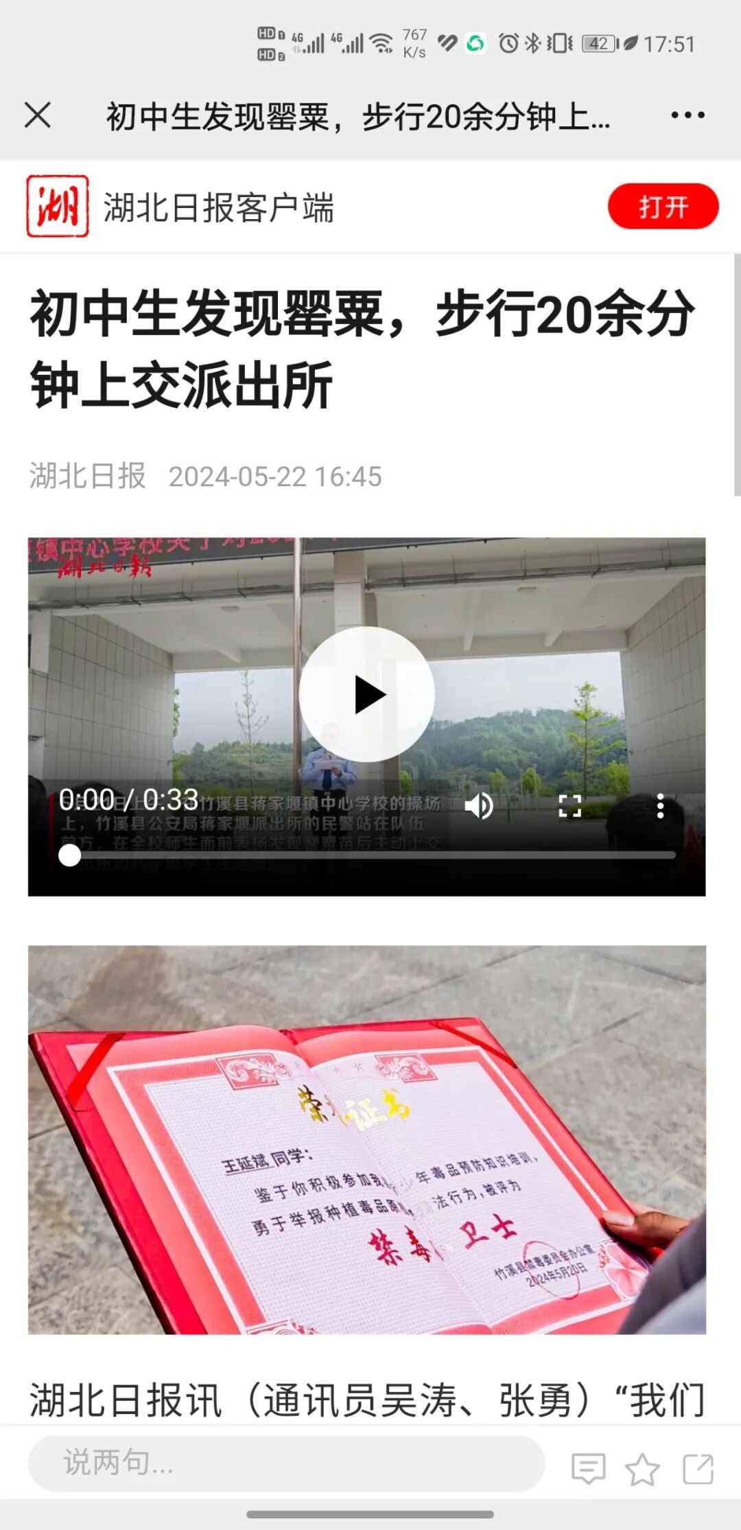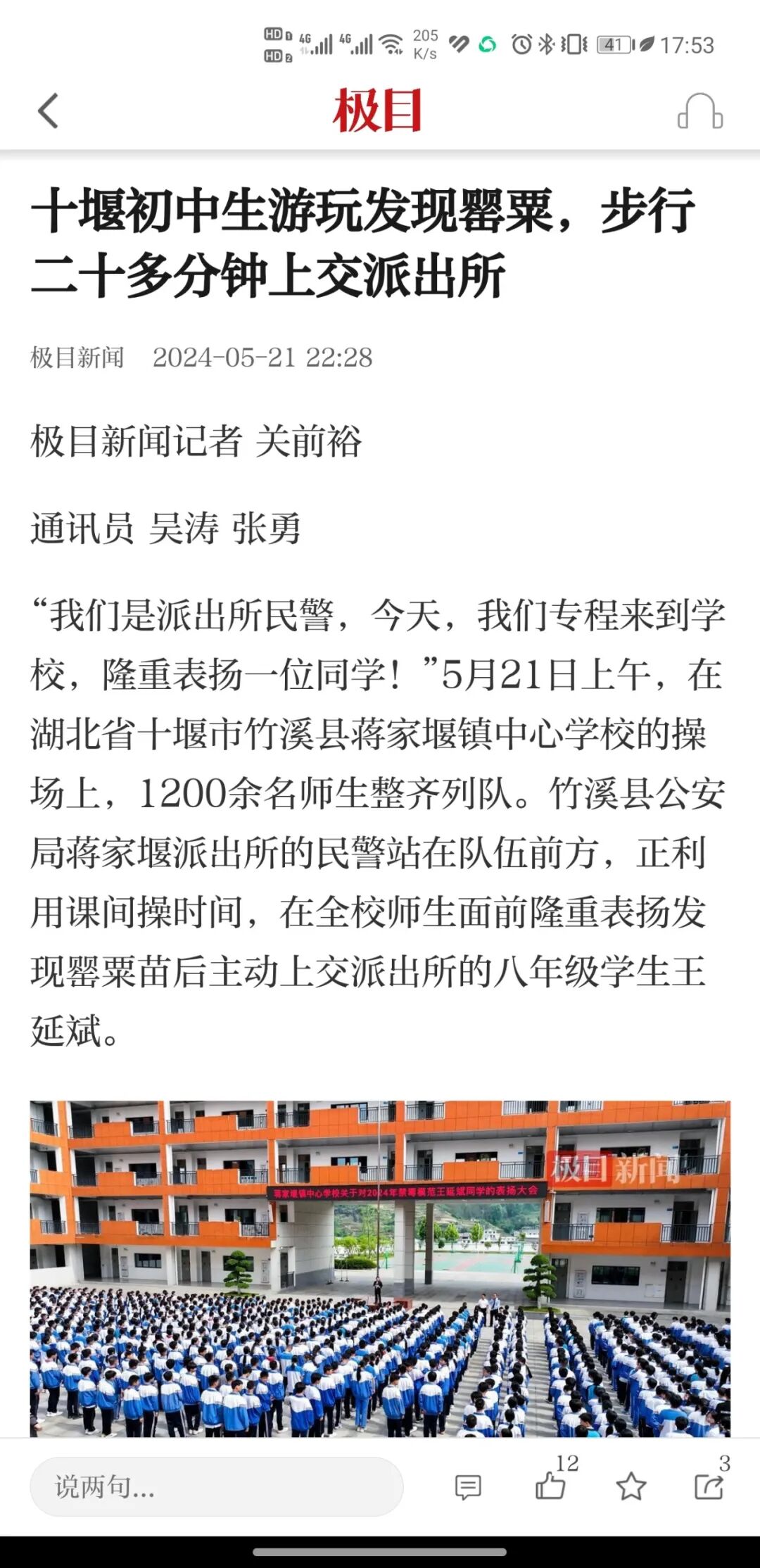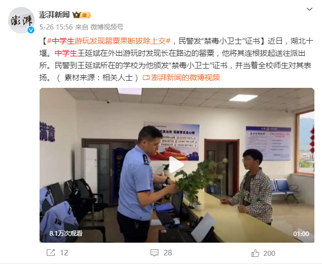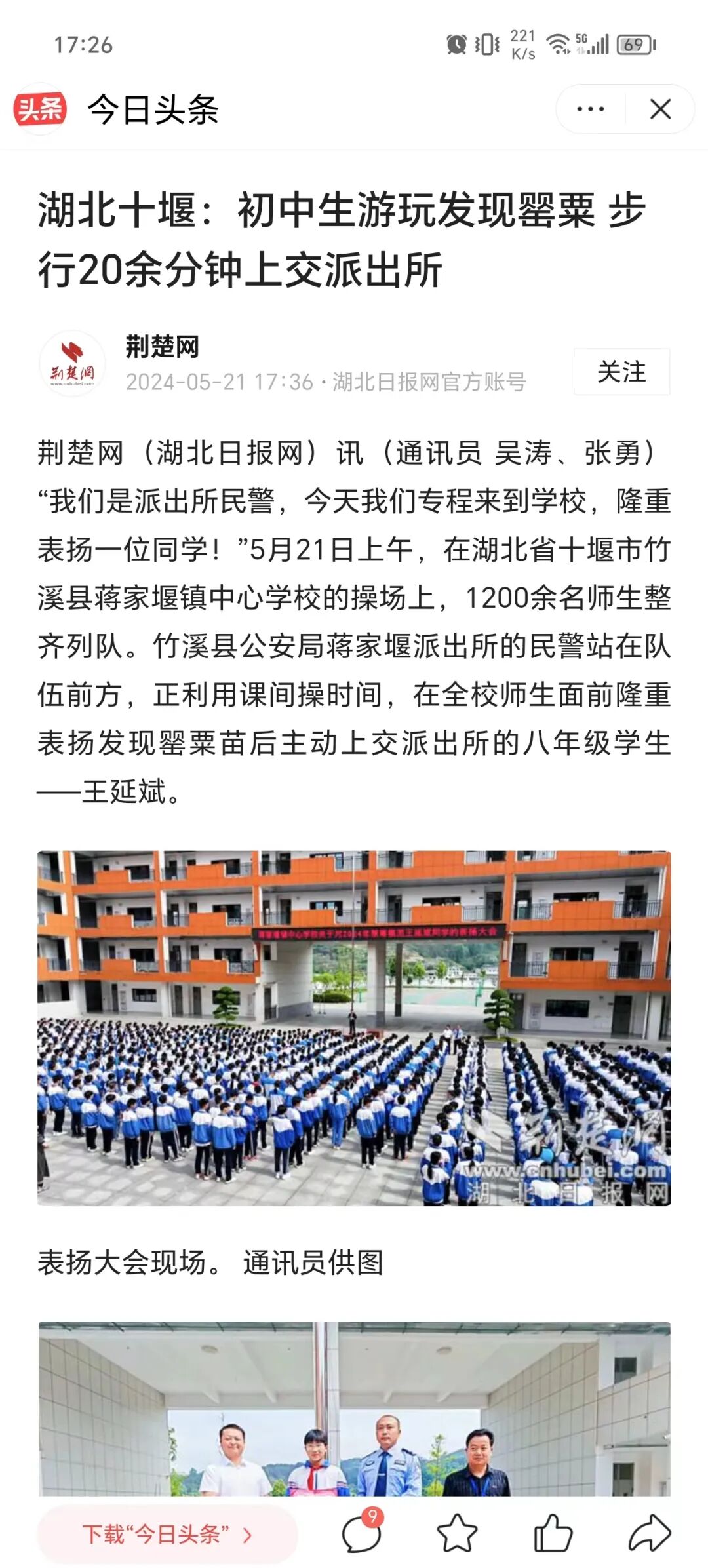 少年强,则国强,去年3月竹溪的两个小姑娘也通过普法宣传识别发现罂粟果并上交警察手中也同样被国家级媒体聚焦关注,获得全网点赞!