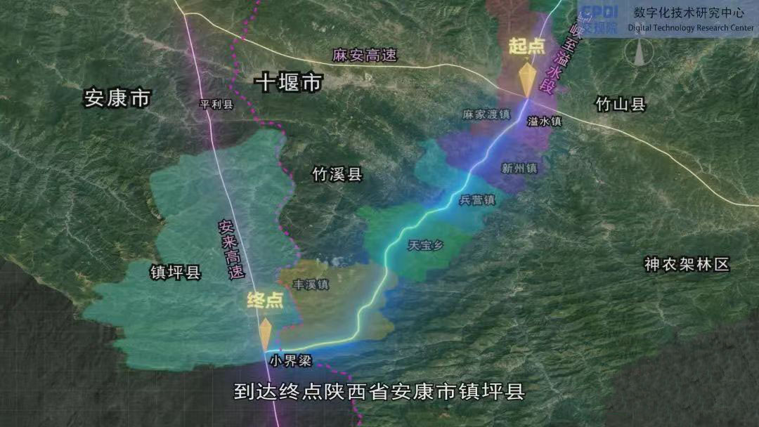 项目起于竹山县溢水镇东川村,与已建的十巫高速公路鲍峡至溢水段对接,向南经竹山县溢水镇、麻家渡镇,竹溪县新洲镇、兵营镇、天宝乡、丰溪镇,止于陕西省钟宝镇东风村,与安来高速公路相连,计划2027年建成通车。
