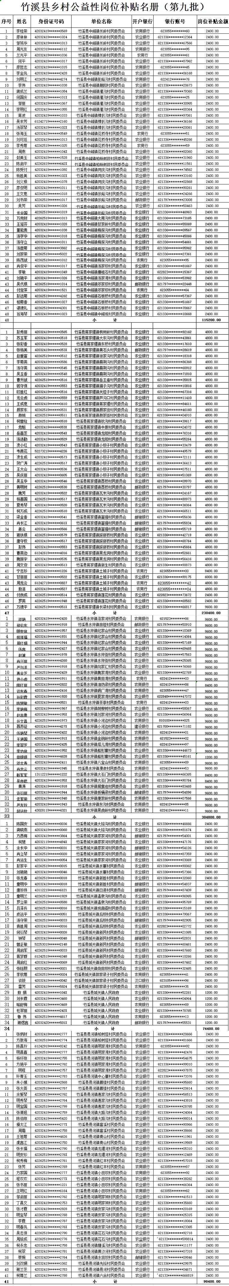 近日,县公共就业和人才服务局在竹溪政府网发布竹溪县乡村公益性岗位补贴公示名册(第九批),拟拨付岗位补贴资金813600.00元,涉及我县共5家单位201人。