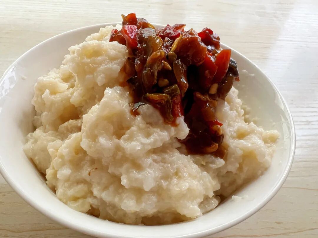 如果在甜浆子里加上豆腐,就变成了竹溪的另一种风味——懒豆腐。要是再配上一碗大蒜辣子吃,那简直是无敌了。