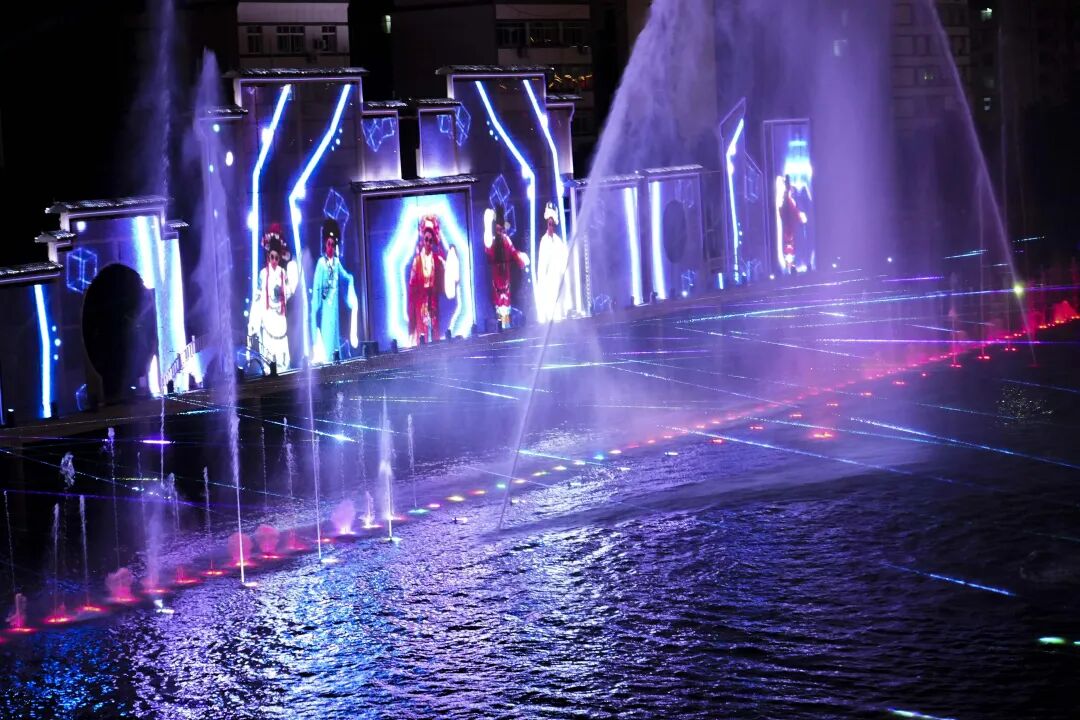 在武陵不夜城,当夜幕降临,随着雄浑厚重的音乐响彻夜空,一束束光影投射在竹溪河畔,勾勒出百转千回的光影世界,演随景动,情景融合,国庆假期仪式感加码。