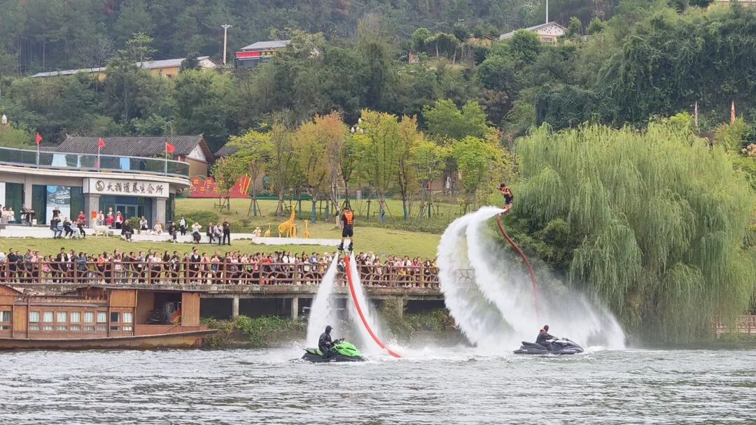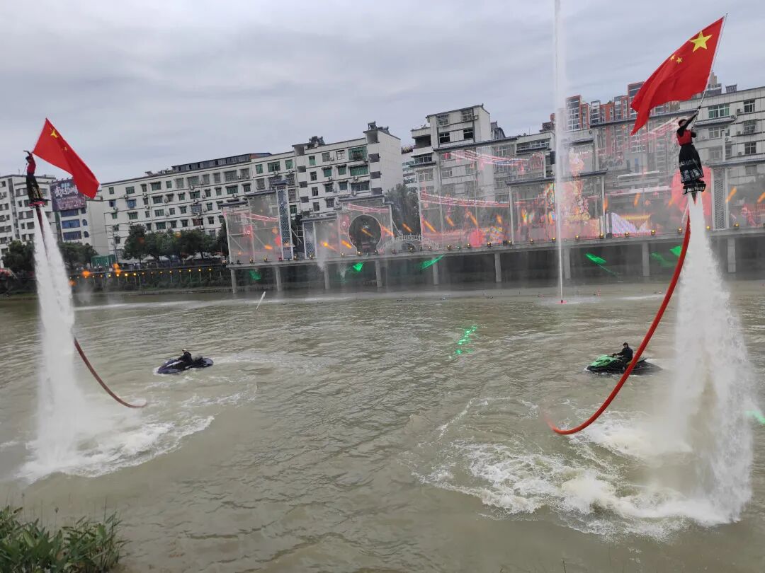 脚踏激流,直冲云霄,在空中划出最绚烂的弧线,让蔚蓝的天际成为最广阔的舞台。当五星红旗在水上迎风飘扬,这场主打“中国红”的“水上特技秀”营造出浓浓的喜庆氛围和爱国情怀。