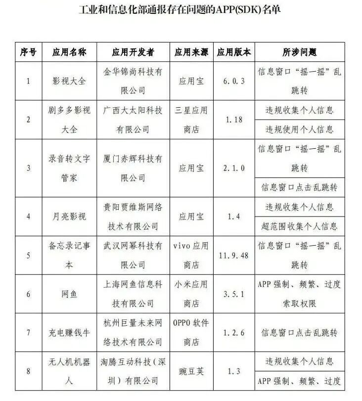 上述APP及SDK应按有关规定进行整改,整改落实不到位的,我部将依法依规组织开展相关处置工作。