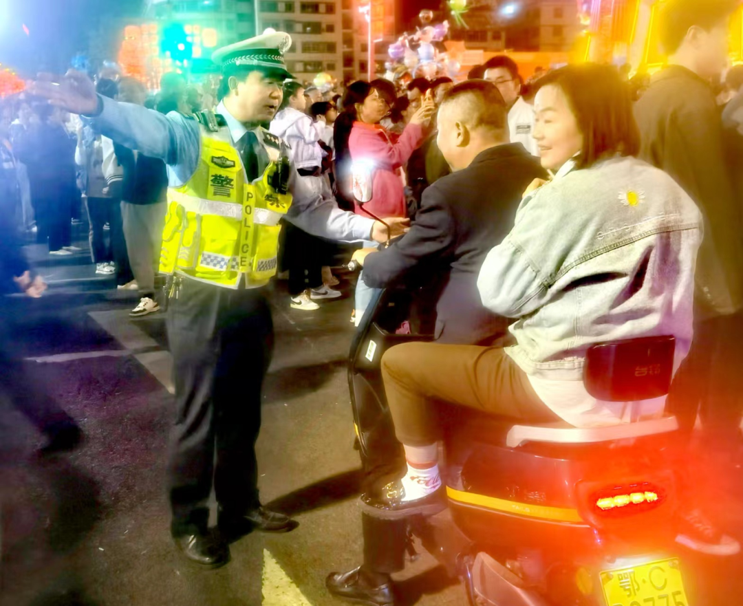 国庆假期,县公安交警全员在岗,坚守岗位,确保群众安全出行。路面执勤人员文明执法,热情服务,提醒群众假期出行时要时刻保持安全意识,遵守交通法规,切勿酒后驾驶、疲劳驾驶、超员超载,做到文明礼让,在武陵不夜城等重点景区景点开展游客问路指引服务2000余次,树立良好的执法服务形象,营造出安全和谐的出行环境。
