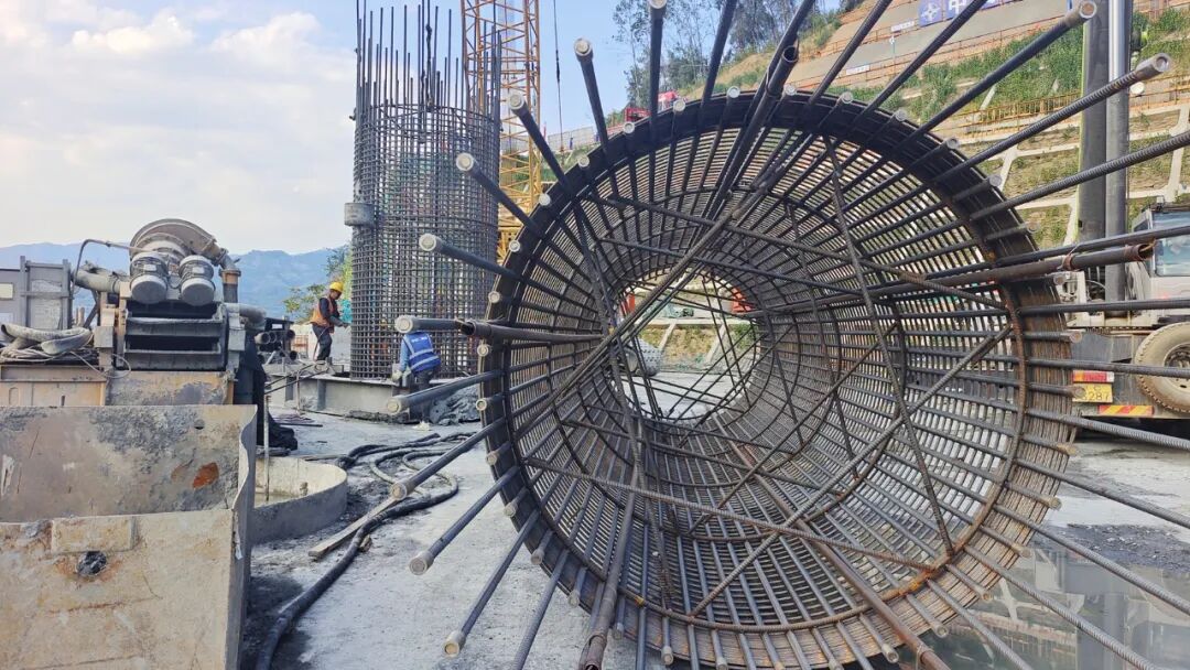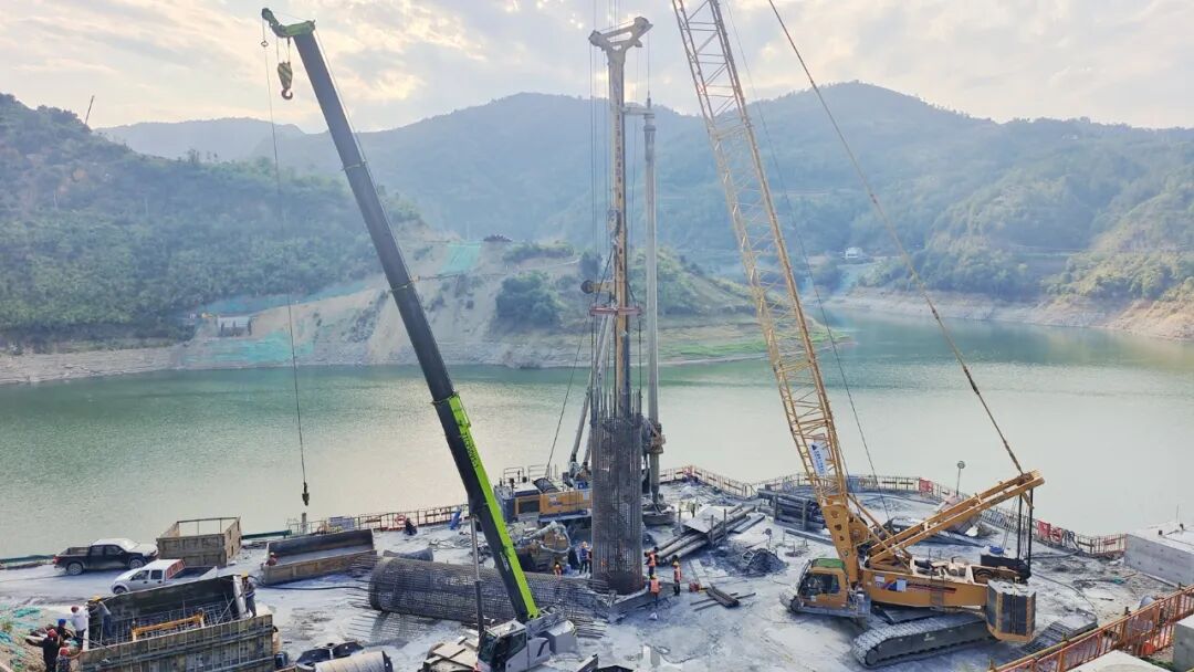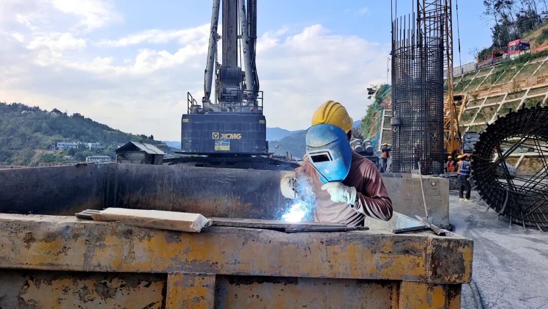 在新洲镇,全球最大跨径单塔部分地锚式斜拉桥——新洲特大桥正书写着壮丽的建设篇章。施工中,针对秦巴山区岩层褶皱多、泥质板岩极破碎且黏土矿物含量大、倾斜角度大、软弱不均匀、强度差异变化大等特殊地质情况,建设者们采用了旋挖钻加冲击钻的“多直径钻头组合+分级成孔”工艺解决超大直径桩基的钻孔成孔难题,此外,还通过引用智能超声波成孔质量检测仪、优化加固钢筋笼安装,运用泥浆全部置换技术,严格控制高温条件下混凝土浇筑温度等工艺技术手段确保成桩质量,安全、优质、高效地完成了主墩桩基施工任务,为后期承台、索塔施工奠定坚实基础。目前,特大桥建设已进入关键阶段,正在进行最后一根桩基的地笼下放。