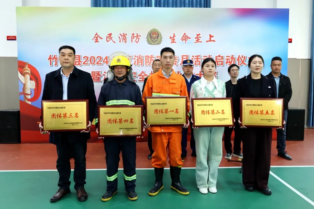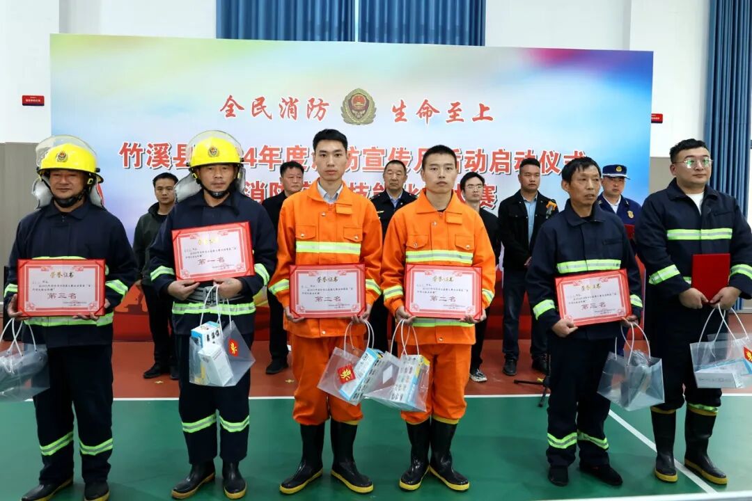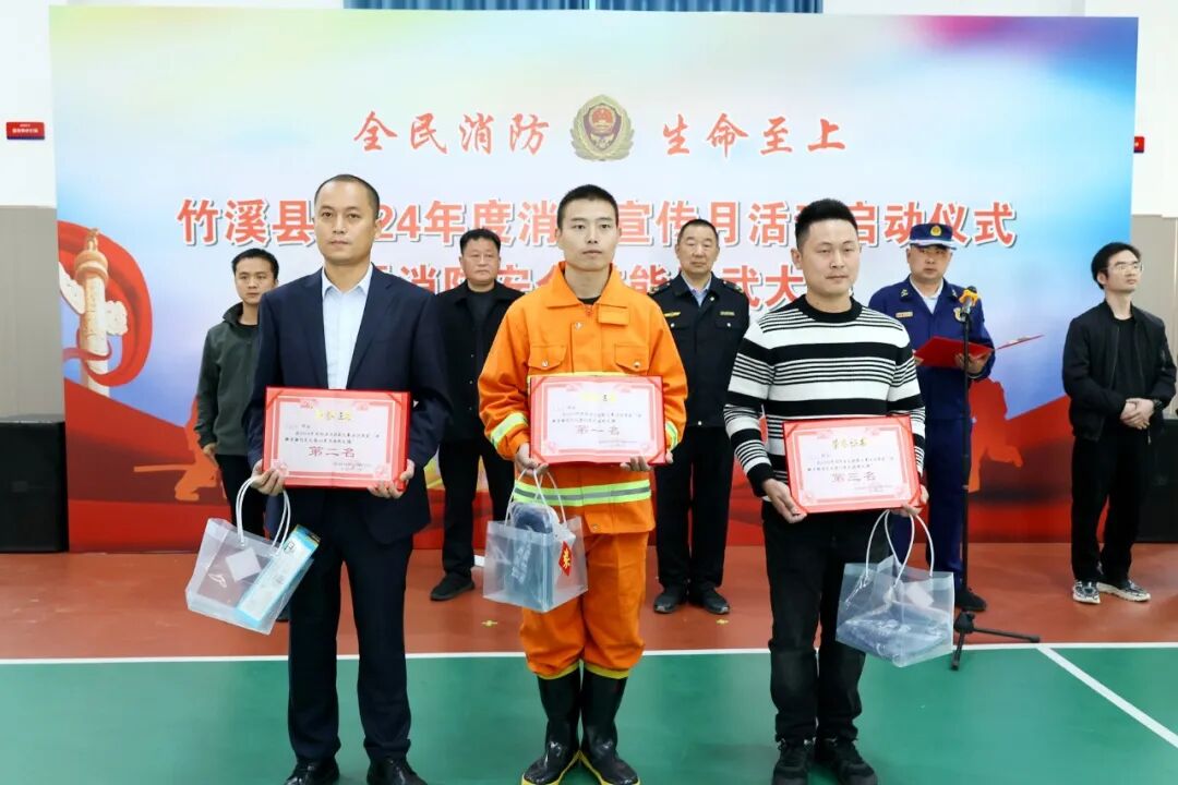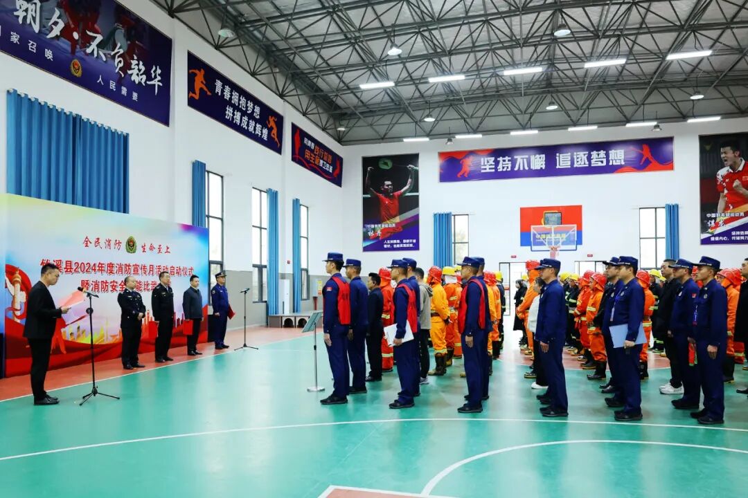 云上竹溪客户端讯 记者 李遥 通讯员 王野 报道:为进一步提升公众的消防安全意识和自防自救能力,推动落实消防安全责任,强化消防安全风险防范意识,11月6日,2024年竹溪县“119”消防宣传月启动仪式暨2024年消防安全技能比武竞赛活动在北环路消防救援站举行。县内各行业部门,及部分消防安全重点单位、物业公司、金融机构200余名代表及消防指战员参加活动。