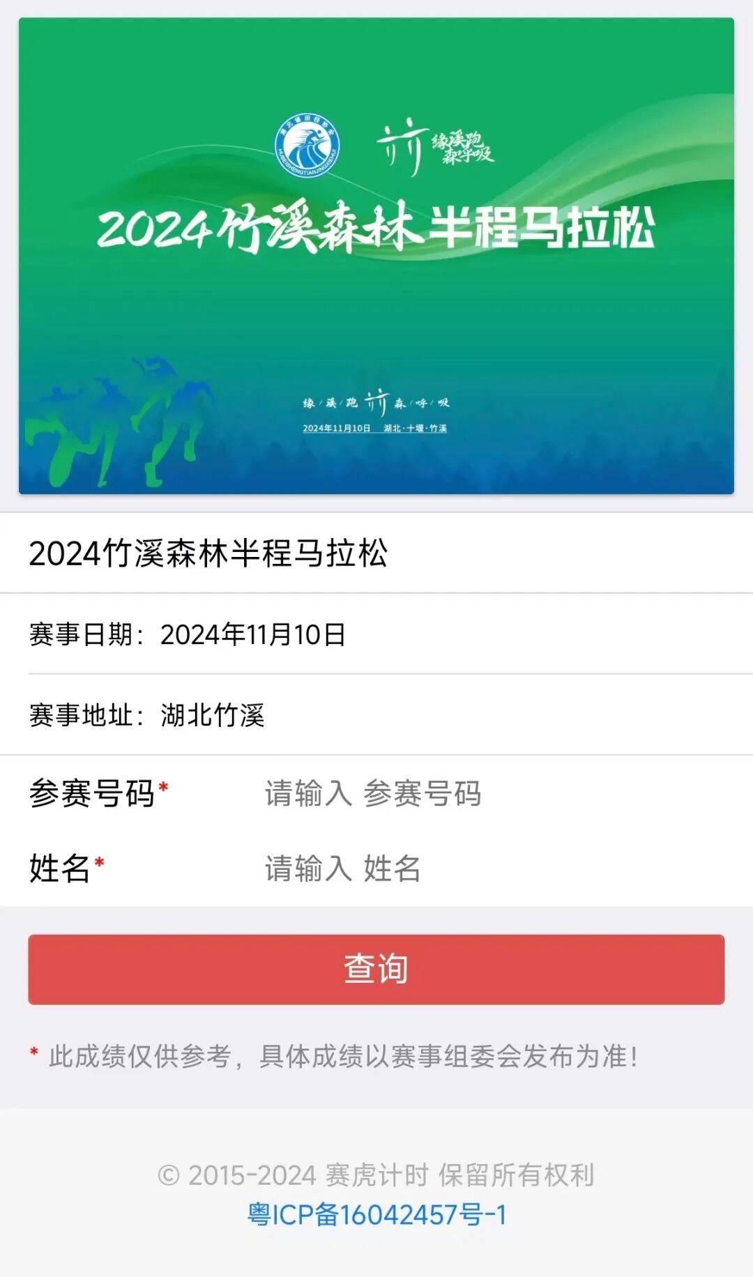 竹马选手注意啦,11月10日2024竹溪森林半程马拉松圆满落幕,成绩查询、完赛证书下载通道已正式开启!
