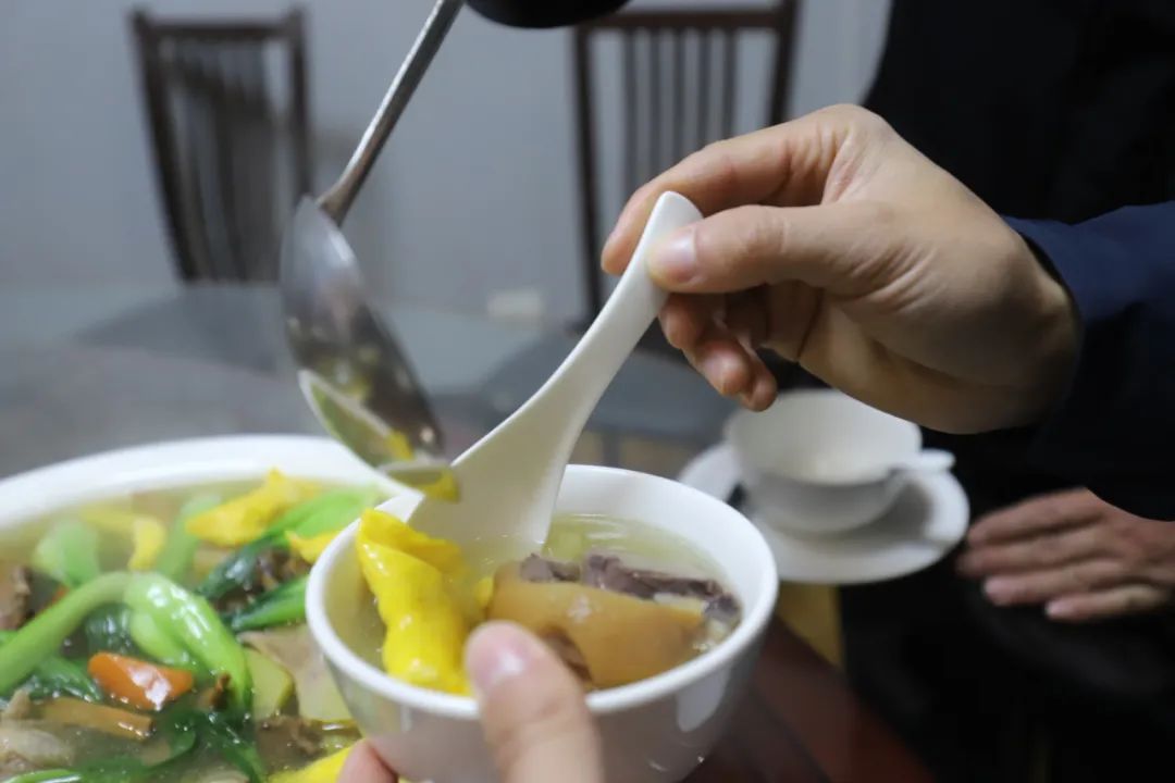 游玩之余,游客们还品尝了竹溪的非遗美食——蒸盆,这道美食汇聚18种食材,经4个小时慢蒸而成,是竹溪人招待贵客时必不可少的压轴大菜,一口鲜香下肚,不仅暖了游客的胃,更传递出竹溪人待客的淳朴与热情。