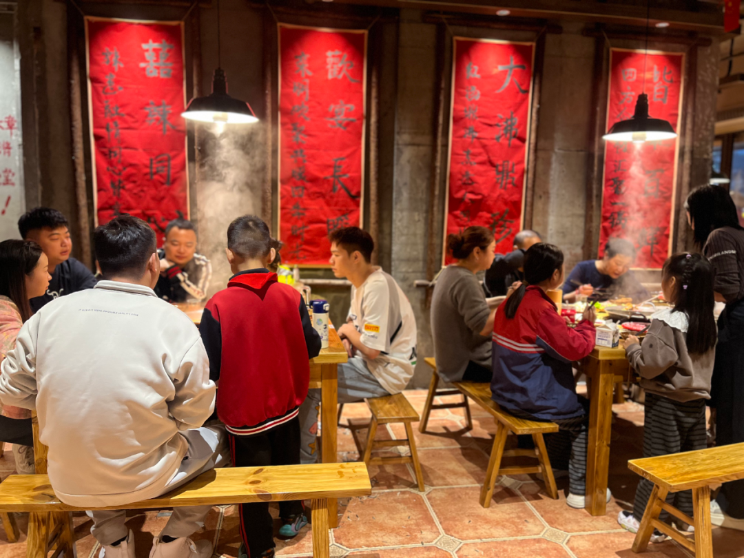 食客们吃得热闹,两人一桌慢悠悠品鲜,五六个好友围坐谈天说地,脸上都挂着满足的笑。