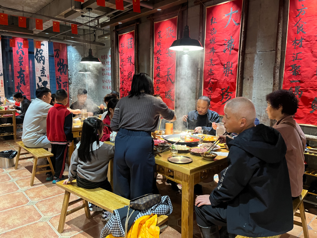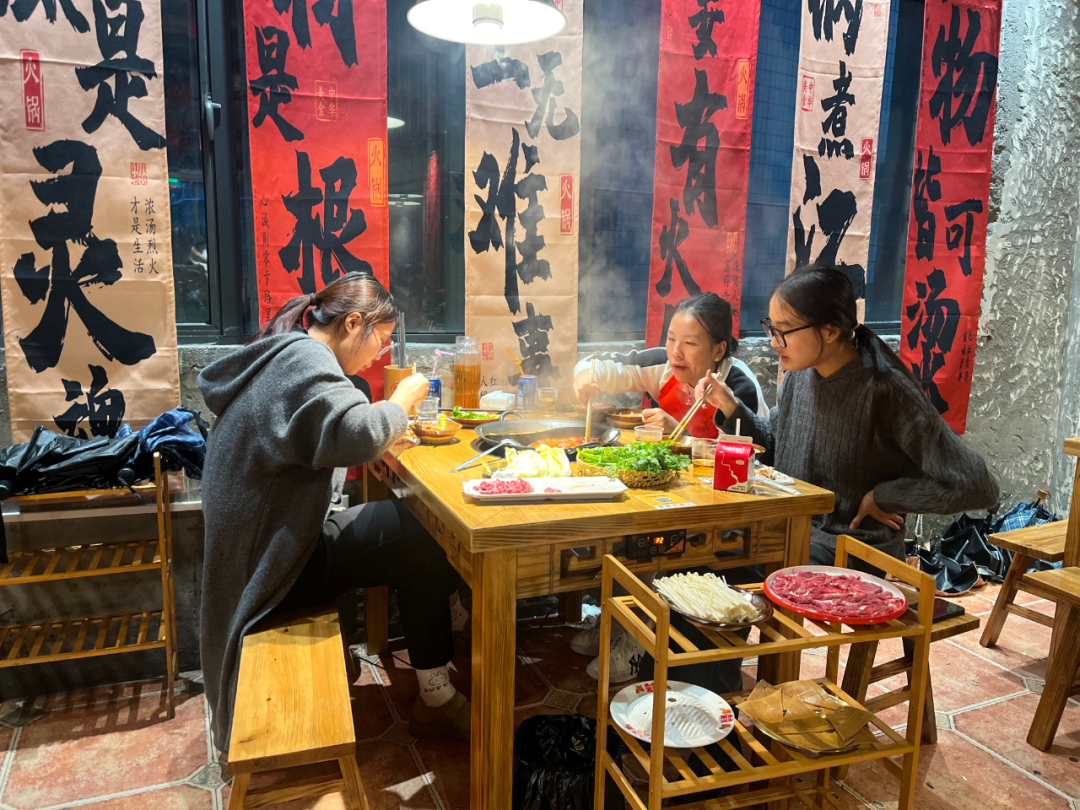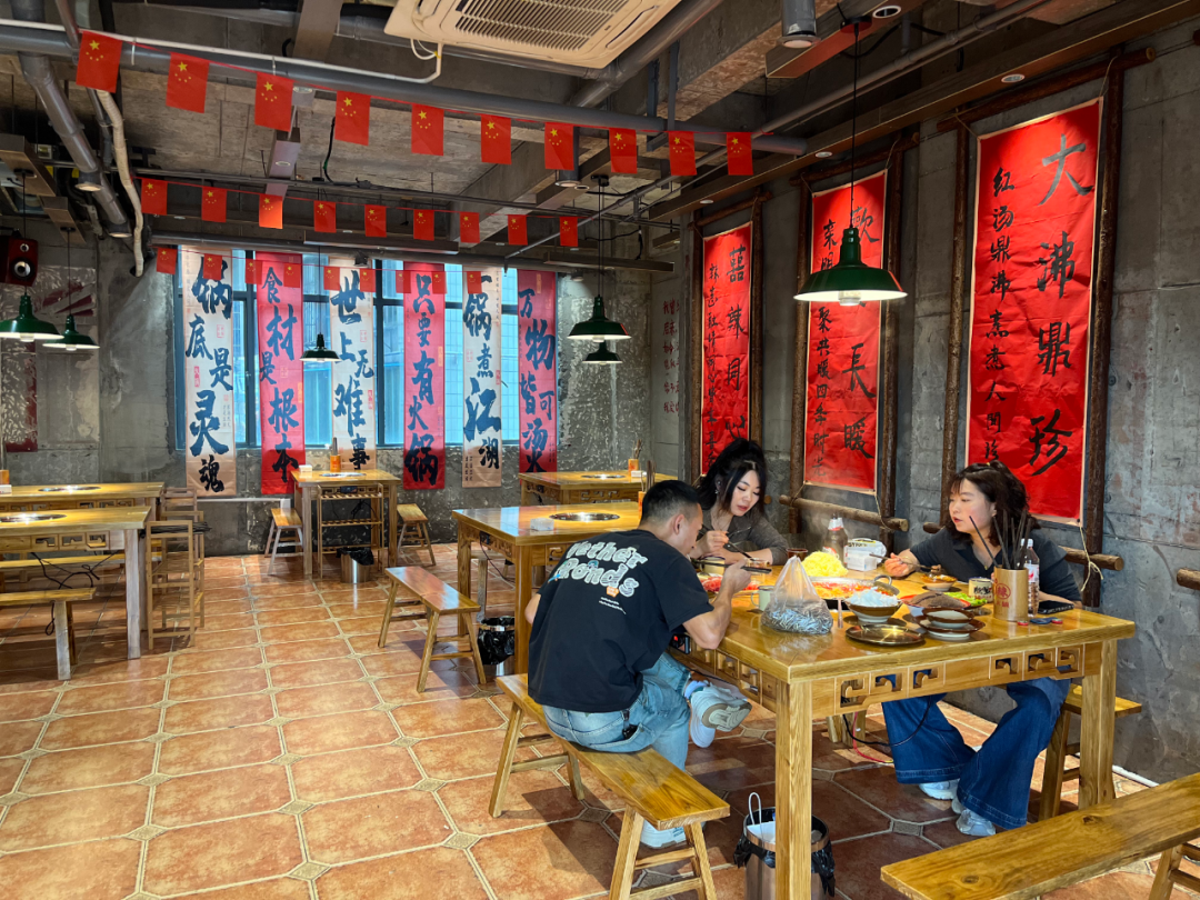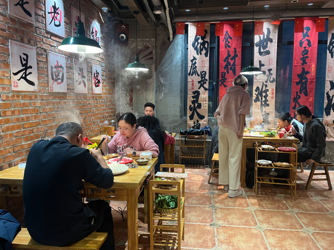 雨天与火锅绝配,沸腾的锅底腾起热气与空中的雾气缠在一起,把温暖和惬意都裹进了店里。