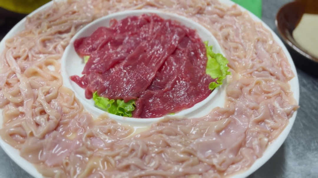 毛肚、鸭肠在锅里滚一圈就变得脆嫩,虾滑凝固后鲜弹入味,新鲜吊龙和羊肉片裹满辣汤,一口下去满是幸福感。