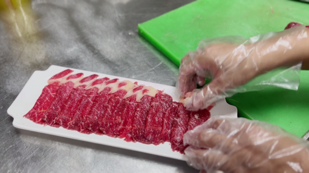 “做火锅,底料和菜品是根。”老板廖亮一边片牛肉一边说,他坚定的眼神里藏着“食客至上”的初心,“得让顾客吃得安心、放心,味道还要好,回头客才多。”