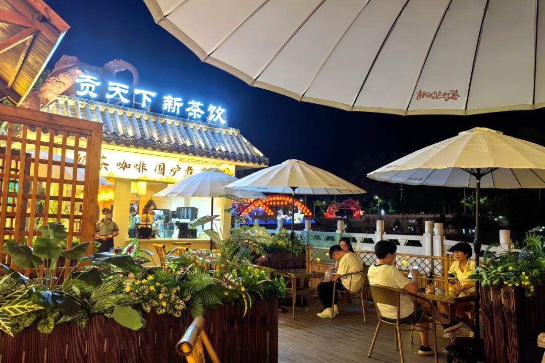 来客围坐茶席,既能尝原叶茶香配花生、麻糖等小食,也能试创新鲜果绿茶,临街还可赏不夜城夜景、听西关河溪水。它以传统茶香守根、创新茶饮引流,承载市民闲逸与游客定格时光的需求,诠释“岁月清欢”,正等候人们赴这场茶香与诗意交织的茶宴。